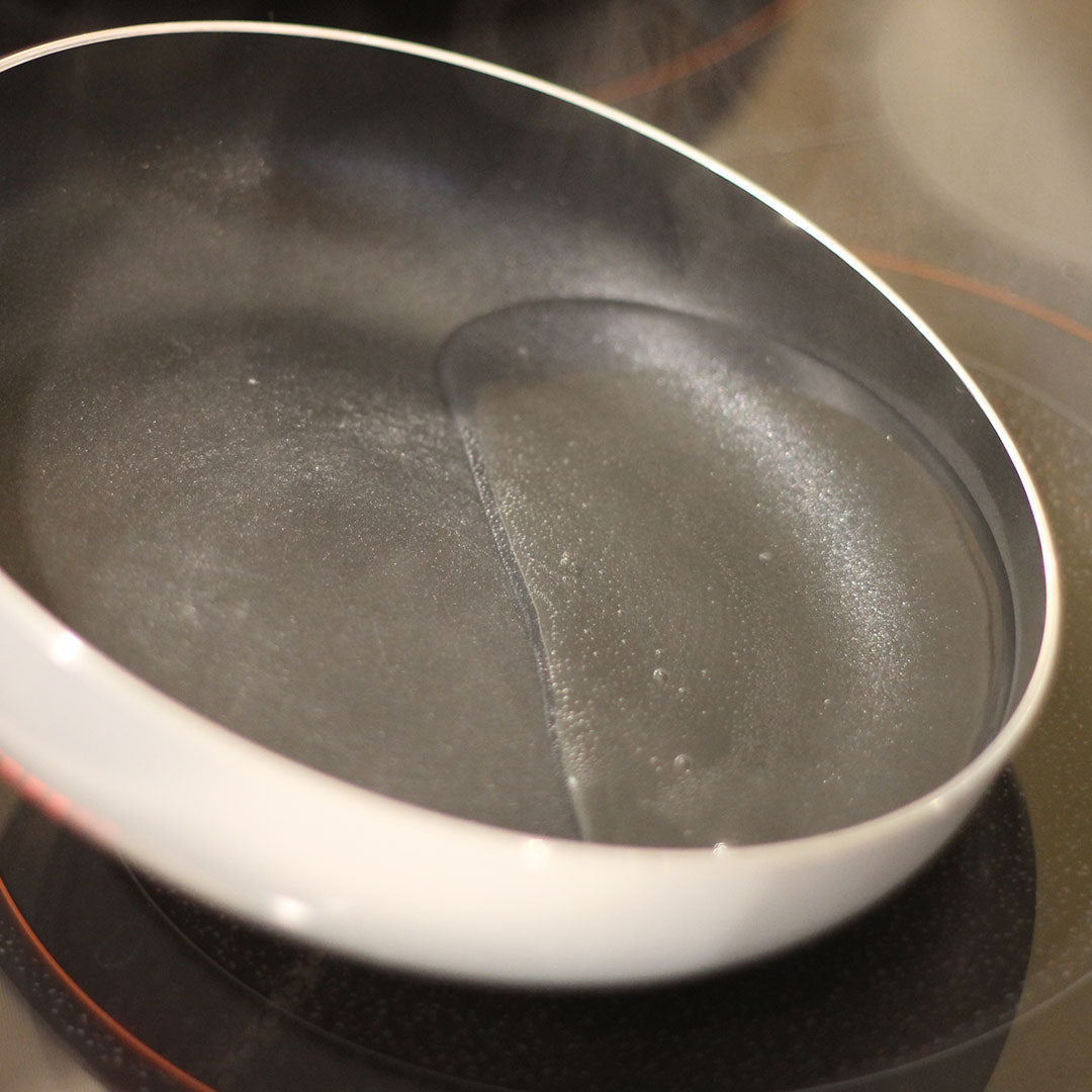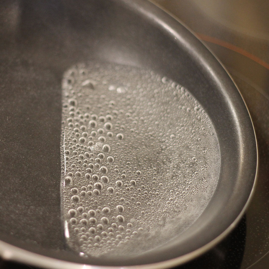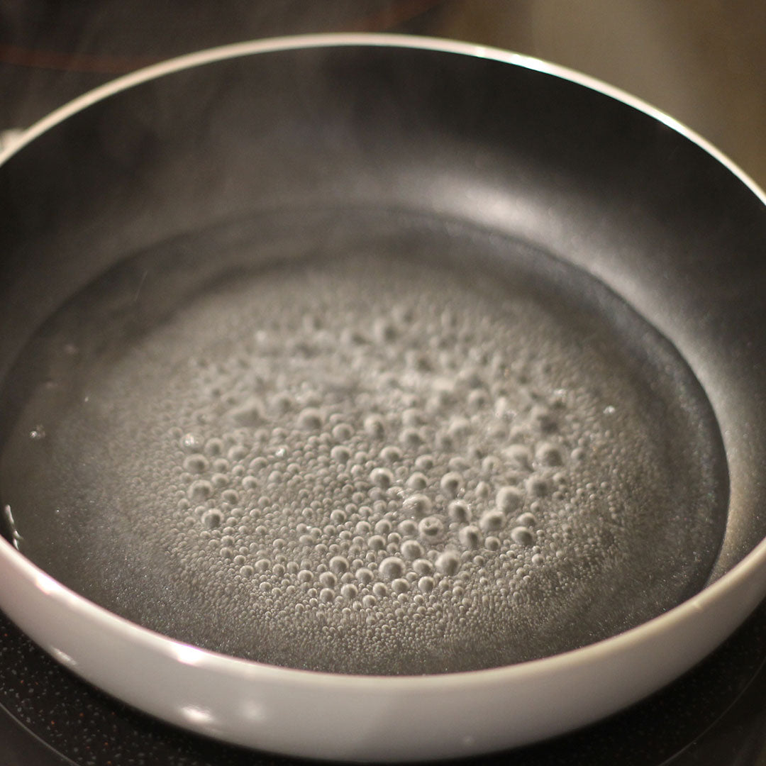 火にかける前に油やバターをひくことも劣化の防止になります。鍋をしっかりあたためて調理したいときは、半分くらいまでお湯をはり、沸騰したらお湯を捨て調理を始めましょう。