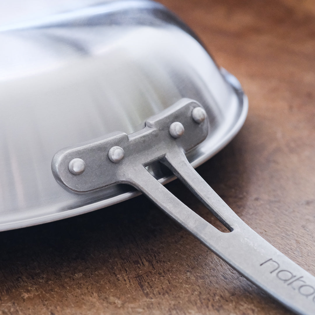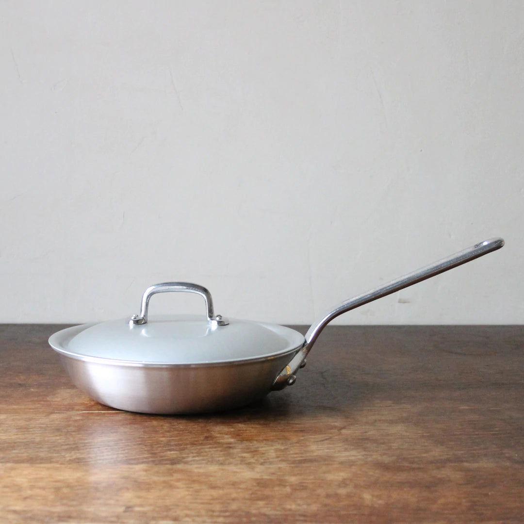 このフライパンには、アルミ製のふたも3サイズ(21,24,27cm)でご用意しています。ふたがあれば、餃子や蒸し煮のときに重宝します。▲なだらかな曲線のふた。こちらの持ち手も熱くなるのでお気をつけください