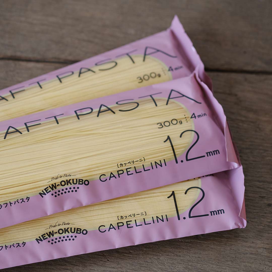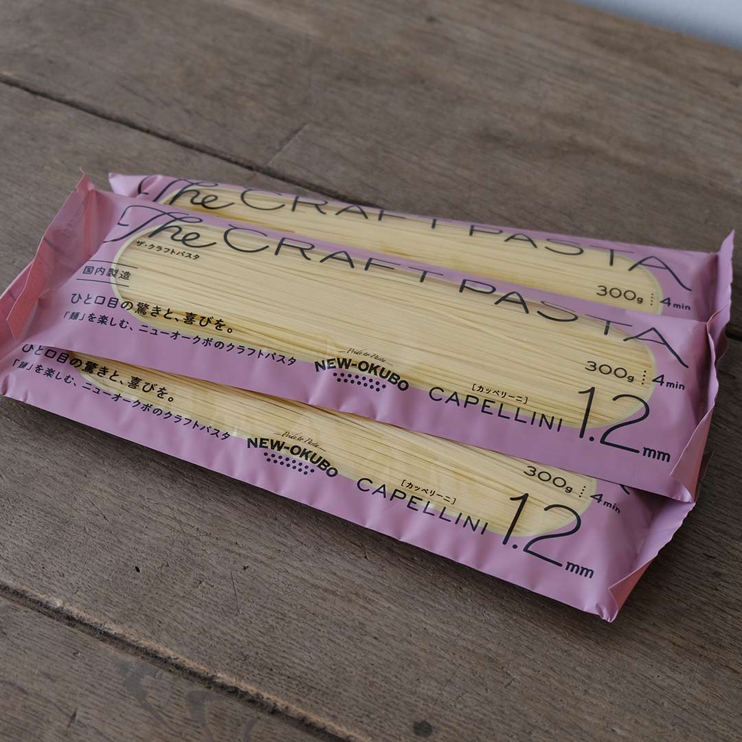 ニューオークボのザ・クラフトパスタより、さっぱりとしたソースと食べたい1.2mm幅のカッペリーニ。同社の魅力は、なんといっても、もちもち感。乾燥パスタでありながら、弾力のある食感に感動すら覚えます。