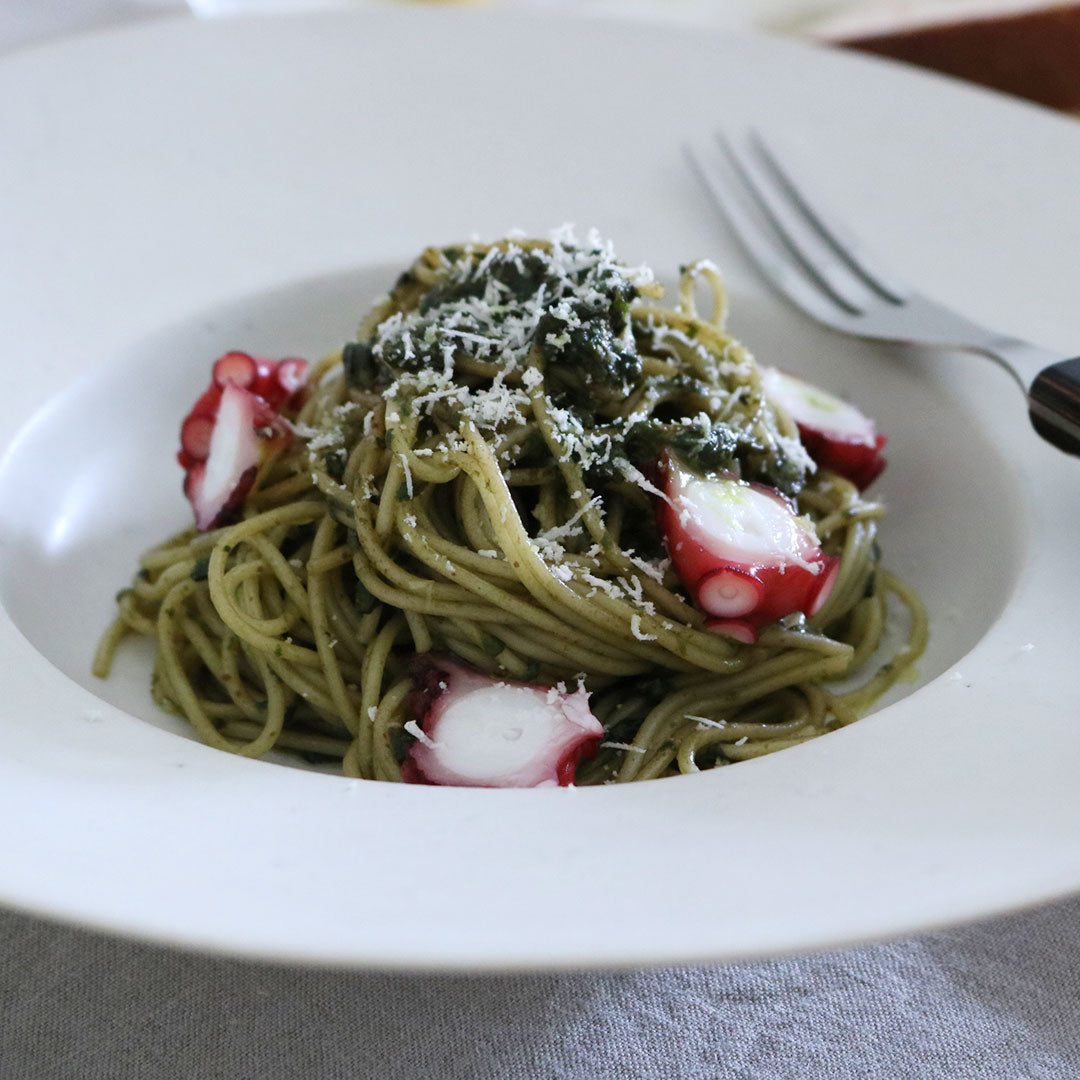 イタリア伝統製法のブロンズダイスと呼ばれる口金を使って製麺されているので、パスタ表面にざらつきがあり、ソースがしっかり絡みます。一度知ってしまうと、このパスタの虜になる方もいらっしゃるかもしれません。