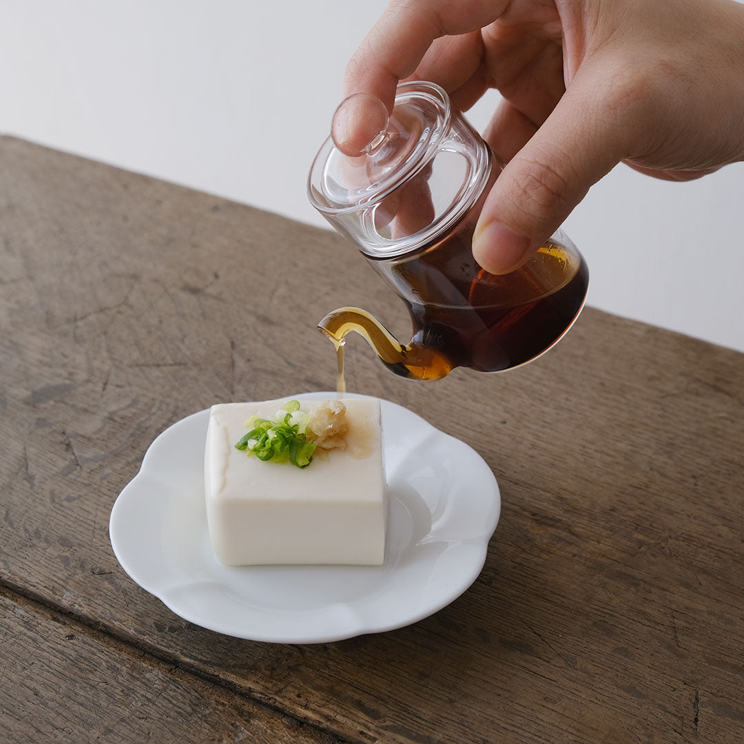 クラフト・ユーは新潟県柏崎市で耐熱ガラスを使った創作をするガラス工房。一滴を注ぎわけることができる、水切れ抜群のミニ汁次をご紹介します。