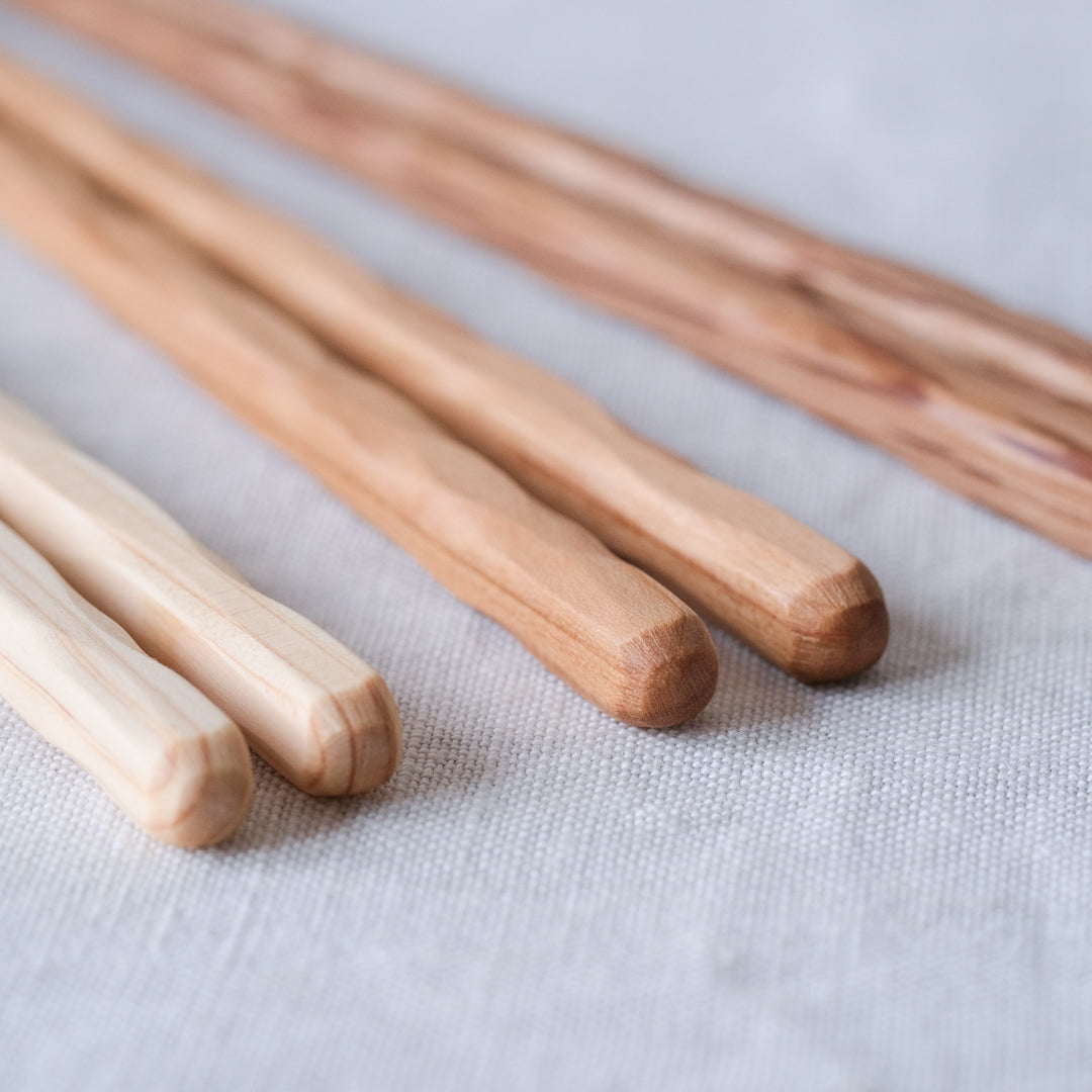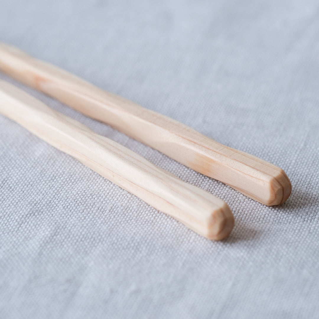 福岡県糸島の木工作家、工房雲の小野寺幸裕さんによるヒノキのお箸。針葉樹のヒノキはできるだけ軽い箸を持ちたい方に。