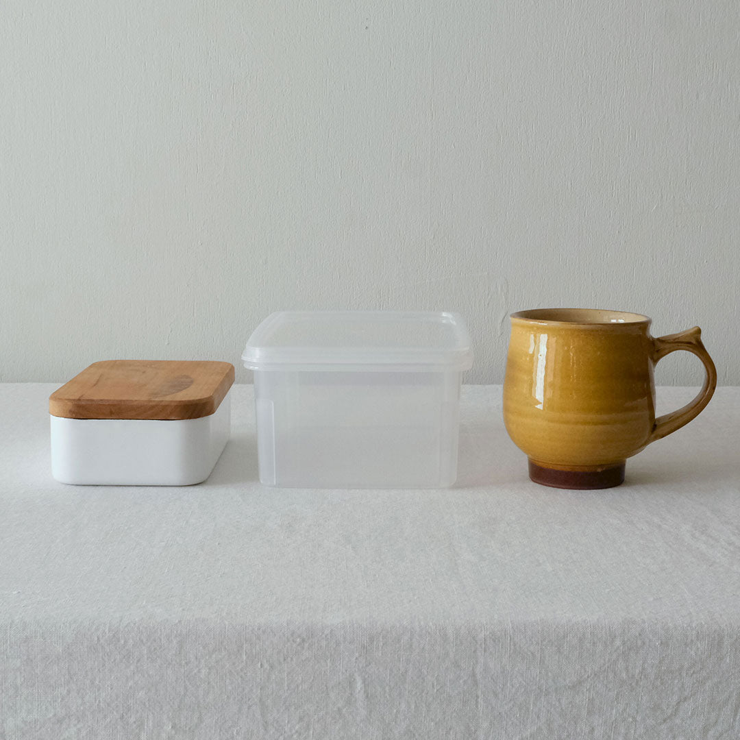 ▲サイズは200g用のバターケースよりも少し幅があり、高さは一般的なマグカップよりちょっと低いくらい