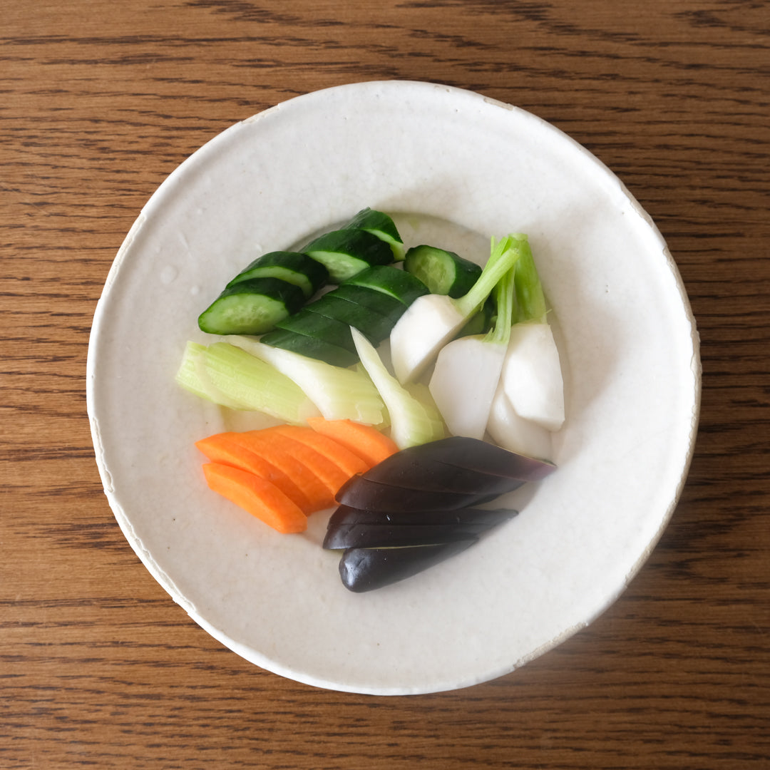 漬けられる量はきゅうり2本、かぶ(中)3つで満杯でした。ちょっとだけ漬けてつまむ、そんなふうに使いたい容器の大きさも魅力です。