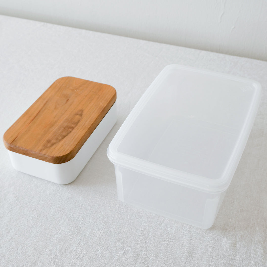 「わたしのぬか床」は専用のタッパ付き。そのタッパのサイズが、漬ける上でも、冷蔵庫にしまう上でも、なんだかちょうどいいサイズ感。