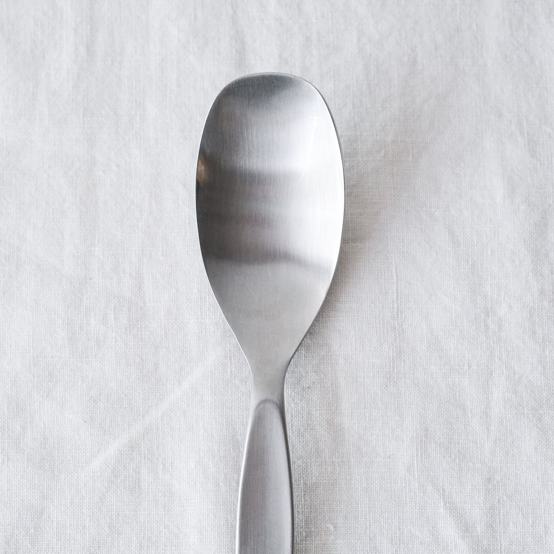 ヨシタ手工業デザイン室による”食卓だけじゃなく台所でも役立つ”カトラリーシリーズ「racco」から、ステンレスなのにやさしい口当たりのレンゲスプーンです。調理中のちょっと混ぜるや料理の取り分けなど複数の役割を持つ一本です。
