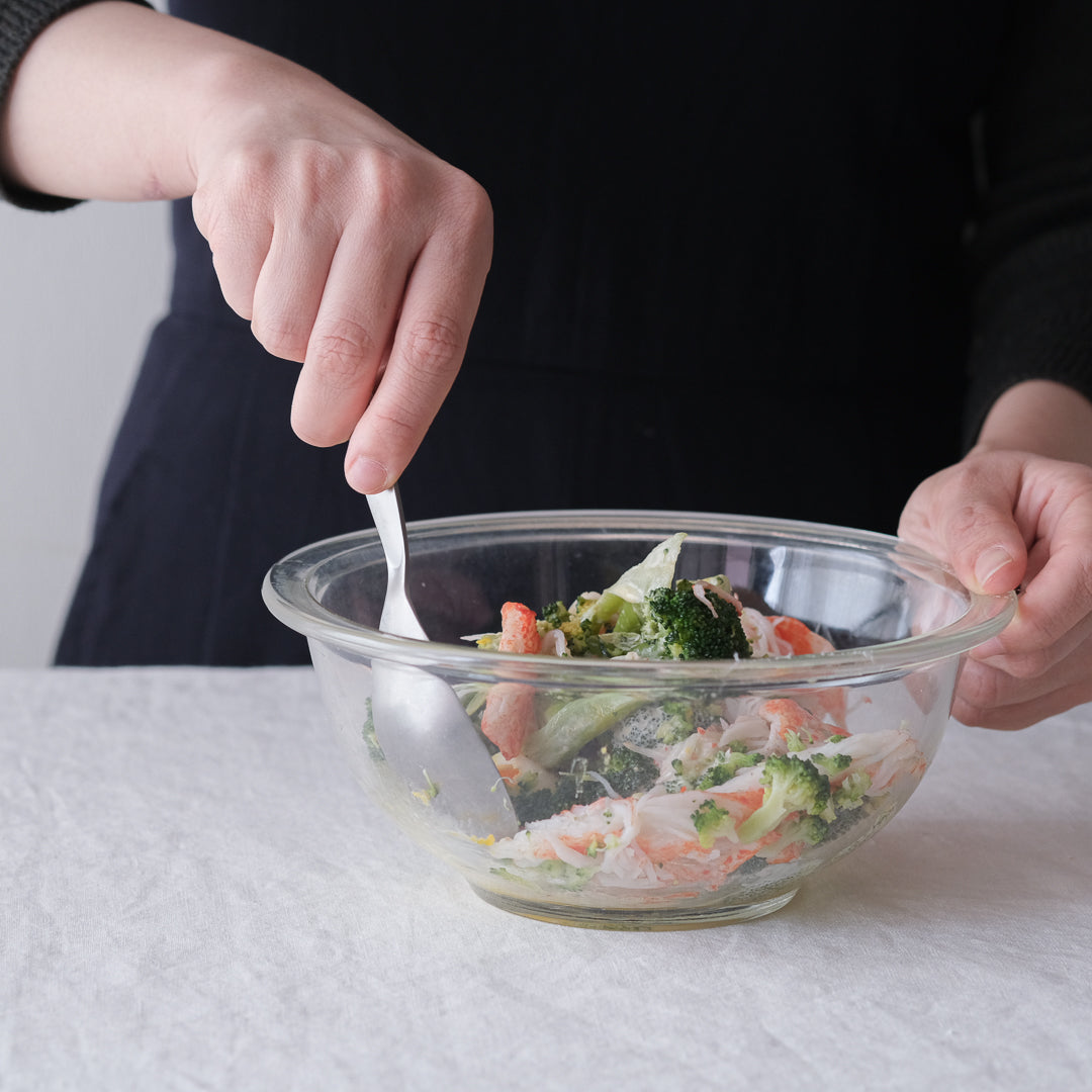 このレンゲスプーンで何かを和えるなどの作業は、身体のより内側で動作するような体勢になり、作業のしやすさを感じます。