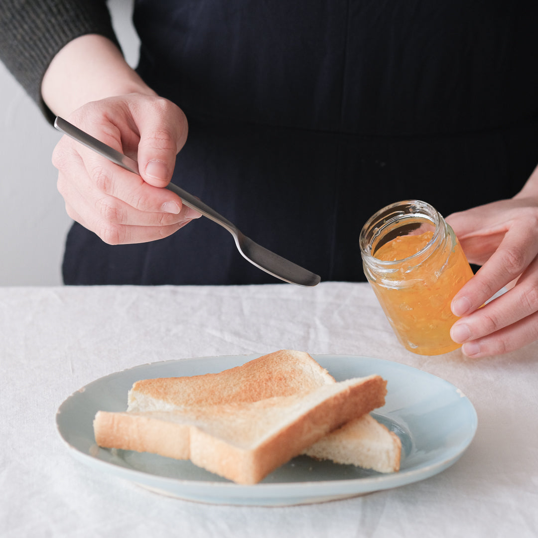 ヨシタ手工業デザイン室による”食卓だけじゃなく台所でも役立つ”カトラリーシリーズ「racco」から、ジャムの「すくう」「塗る」動作を徹底的に突き詰めたジャムスプーンをご紹介します。
