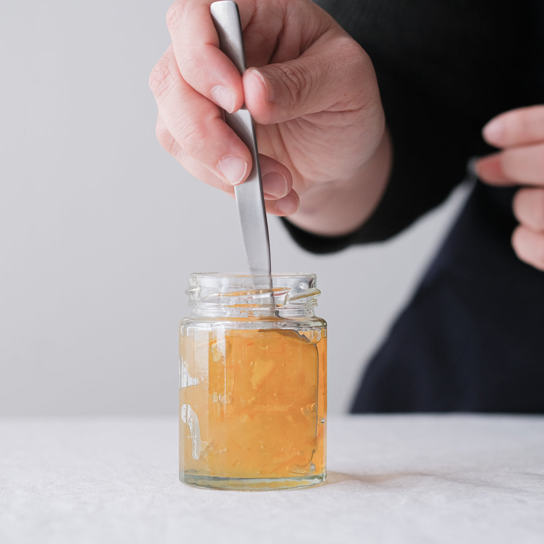 スーパーなどに並ぶ一般的なものは瓶の側面がストレートなタイプが多く、スプーンでジャムをすくうとき、瓶に線を描くように苦戦して、カチャカチャと音を鳴らしてしまうことってよくありませんか。さまざまな形状のビンを想定して、内側に添うようにつくられたヨシタ手工業デザイン室の「ジャムスプーン」は、ジャムの「すくう」「塗る」という行為を徹底的に研究。最後にジャムが残るストレスから回避させてくれます。