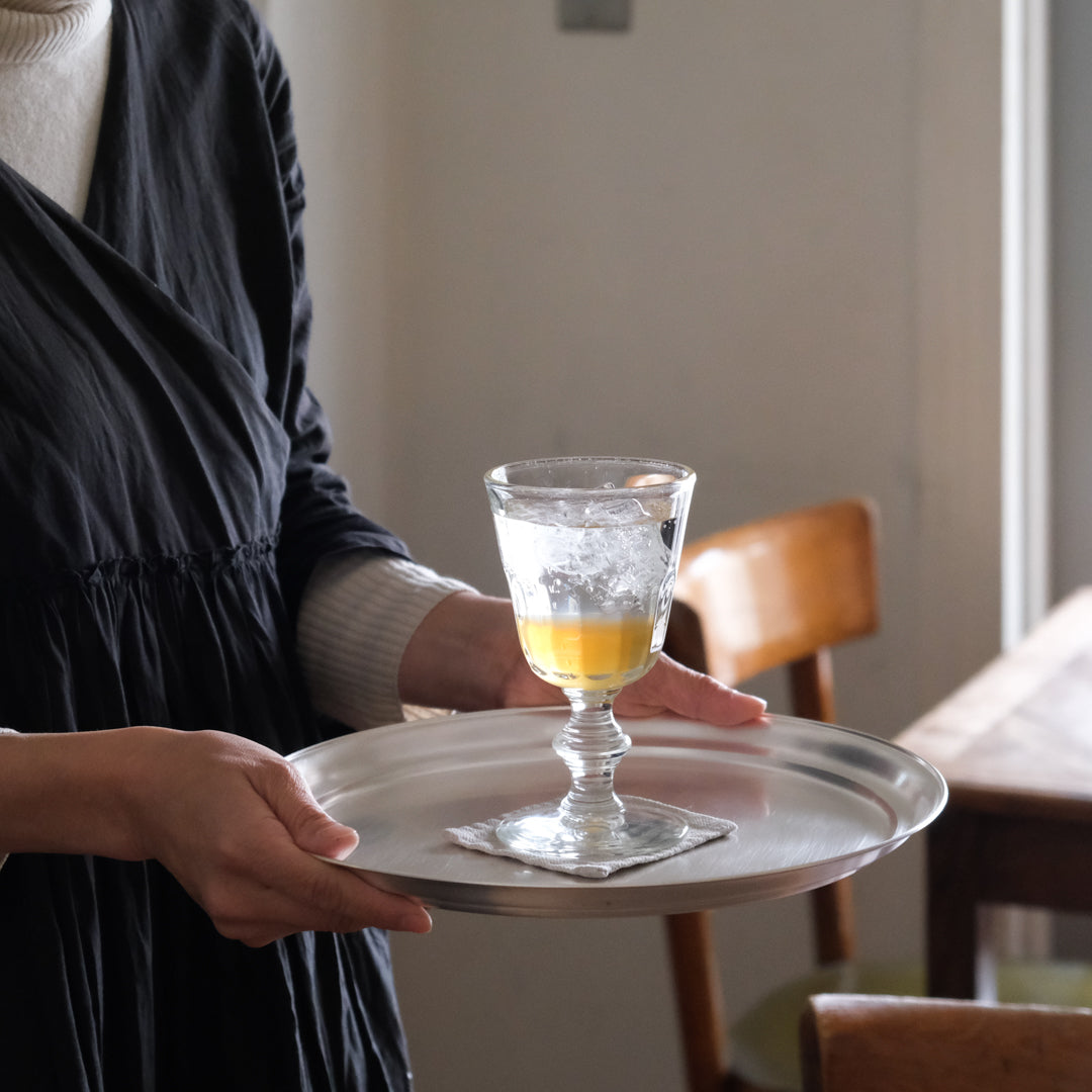 小サイズはちょこっと運ぶのに便利な大きさ。グラスだったら3~4つぐらいでしょうか。またテーブルで使う調味料やジャム、バターなどを置くのもおすすめです。食卓が華やかになります。