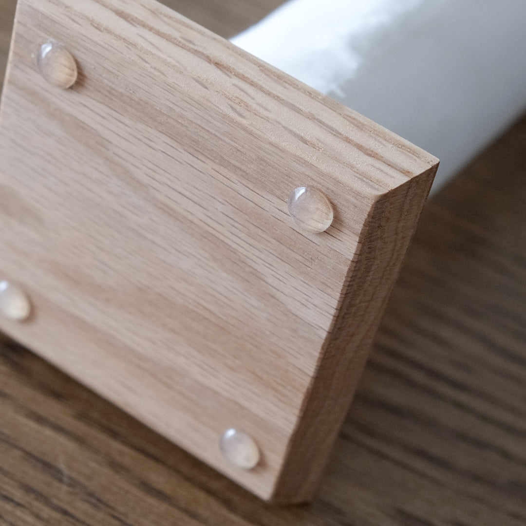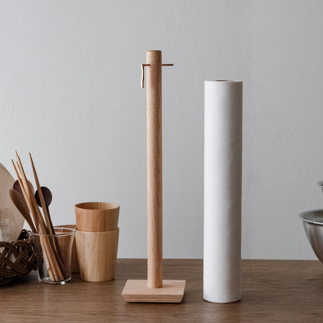 ここでは昔ながらのよさを残しつつ、わたしたちの生活に取り入れやすく考えられた、さささの和晒ロール Stand(和晒ロールCut付き)をご紹介します。ロール状に巻かれた和晒をより使いやすくと考えられた、縦型専用スタンド。空間になじむオーク材が使われ、台座の大きさは10×10cm、高さが41cmだから、小さなスペースで使うことができます。