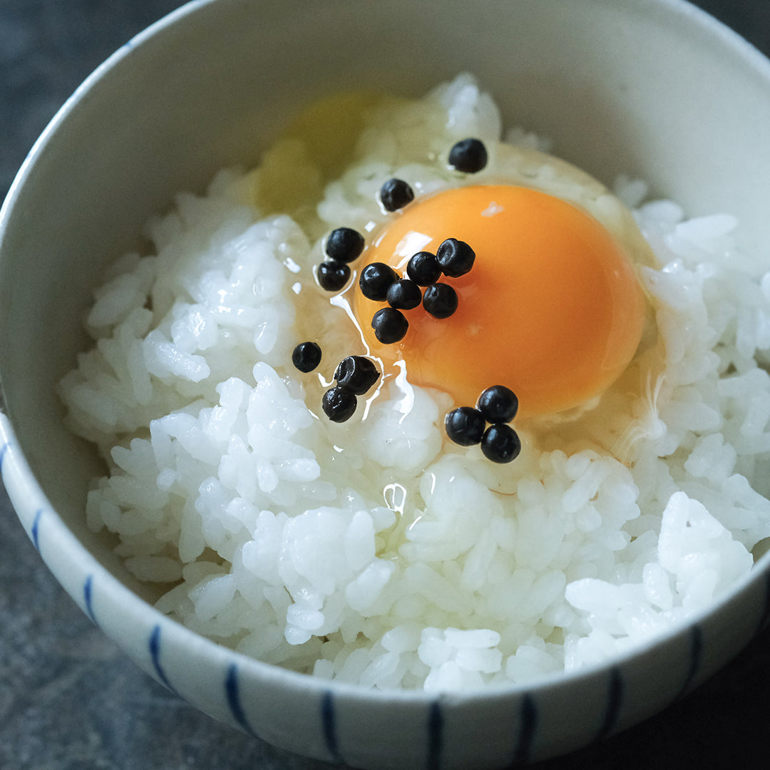 そして卵かけごはん。生こしょうの塩漬けがいいアクセントに。卵の味が活きてきます。