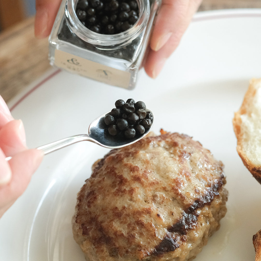 速水さんにおすすめの食べ方をうかがうと、「卵かけご飯、ステーキやハンバーグ等の肉料理の薬味です。ハンバーグを見ると脳内に塩漬け胡椒が浮かぶので、個人的に相当相性がいいと感じているのだと思います」とのこと。