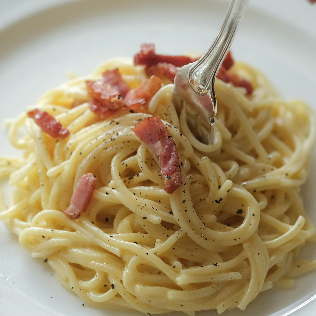 ▲濃厚なカルボナーラに。香りとほどよい辛味が食欲をそそります