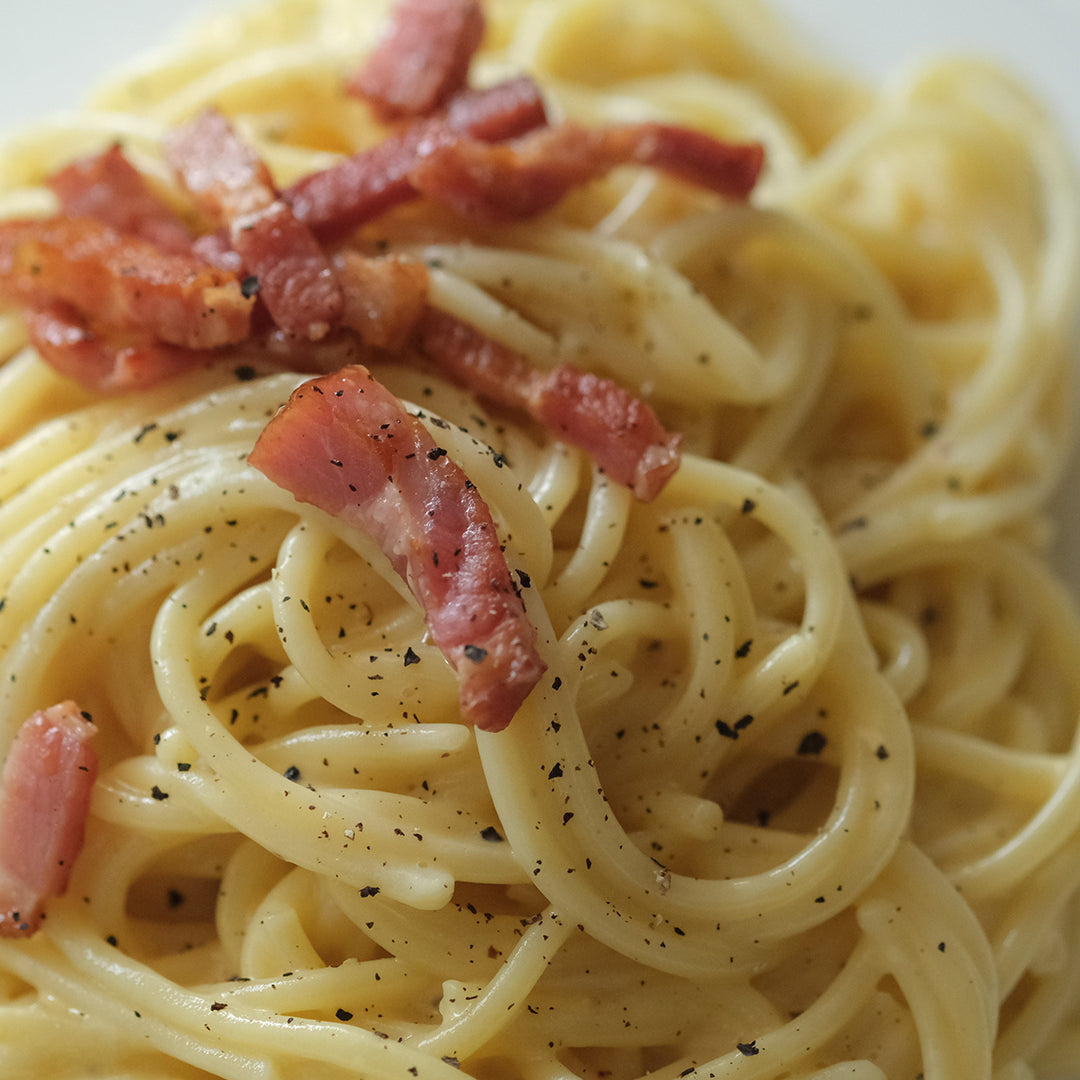 乾燥黒胡椒は何に使ってもおいしいですが、香りがしっかりとしているから、肉料理や乳製品などと使うのもおすすめです。▲濃厚なカルボナーラに。香りとほどよい辛味が食欲をそそります