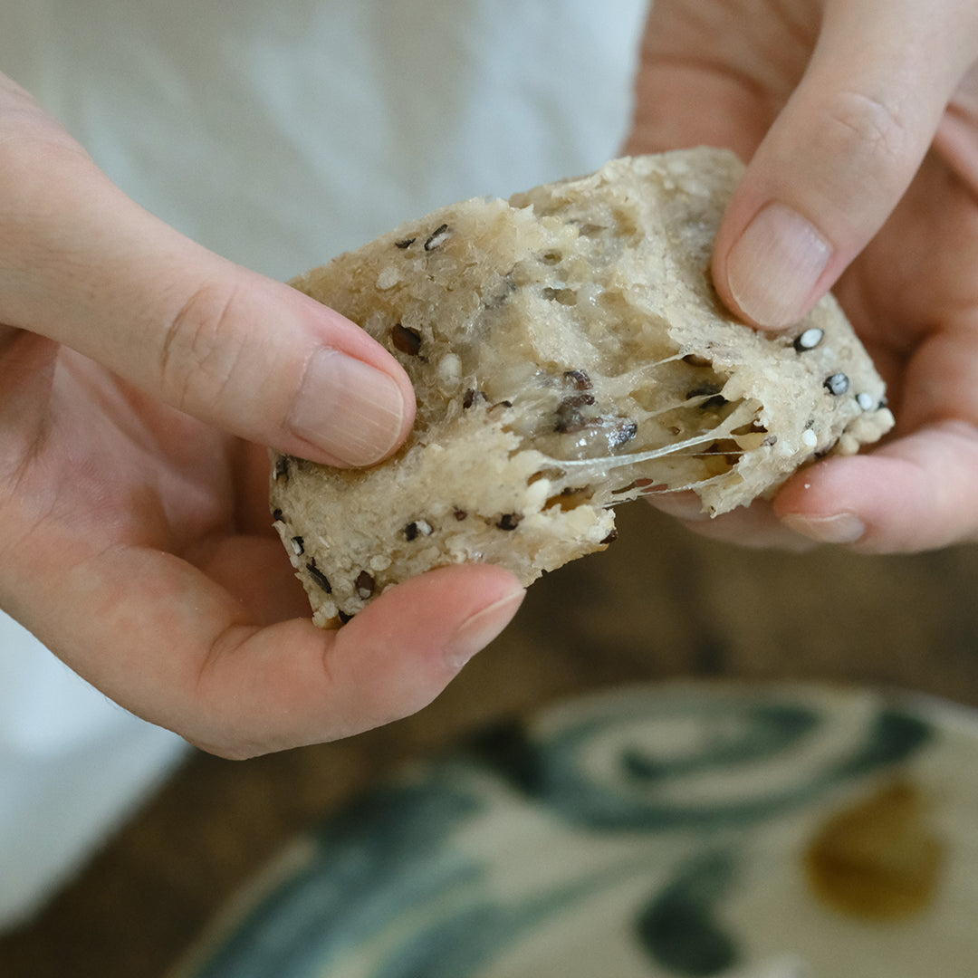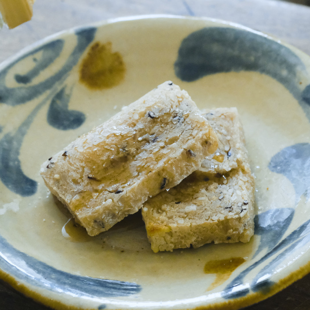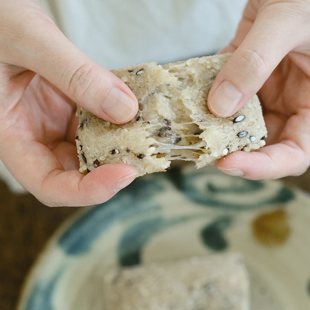 黒米餅は、旨みを引き出す控えめな塩味。そのまま食べてもおいしいですが、古代餅プレーン同様に、様々なアレンジが楽しめます。