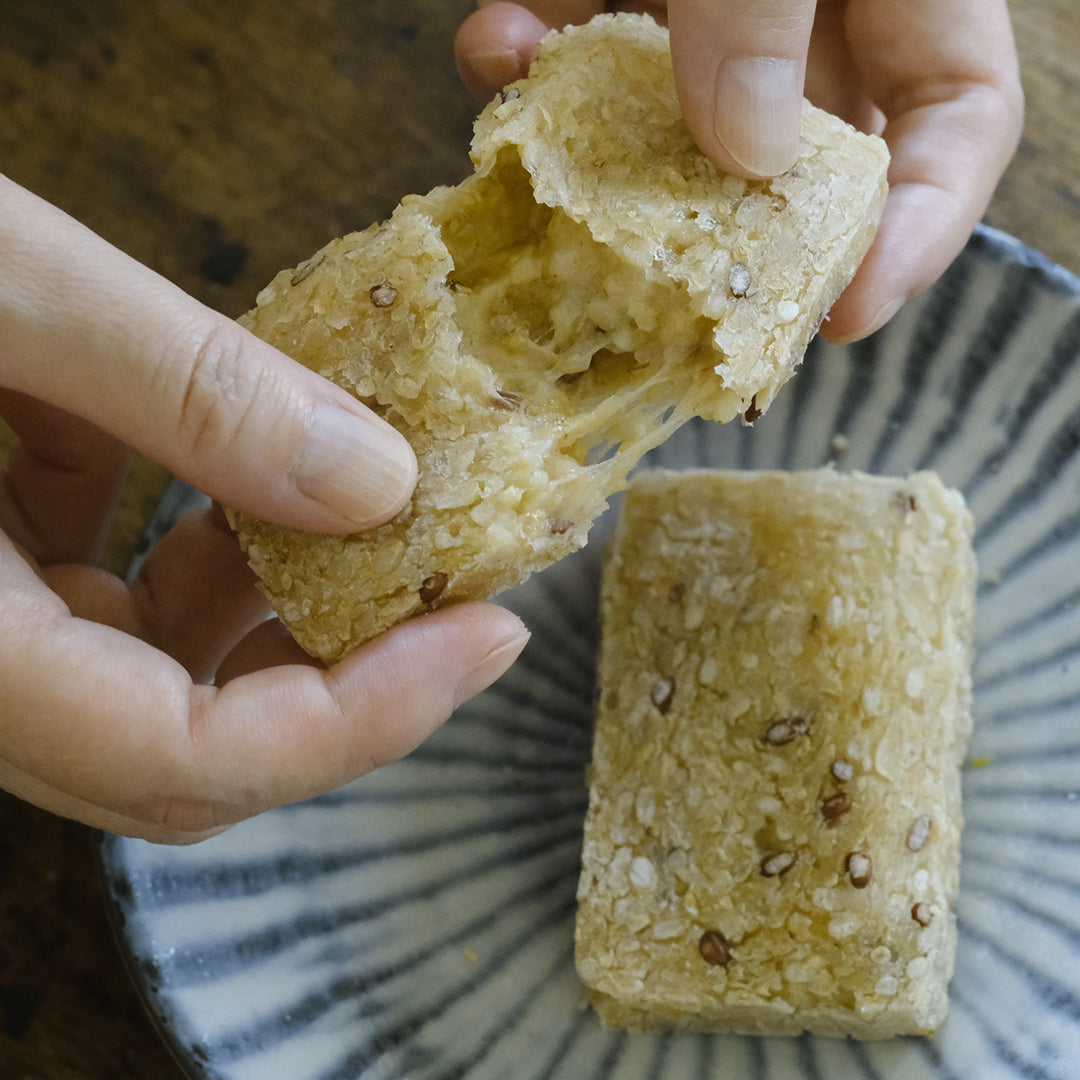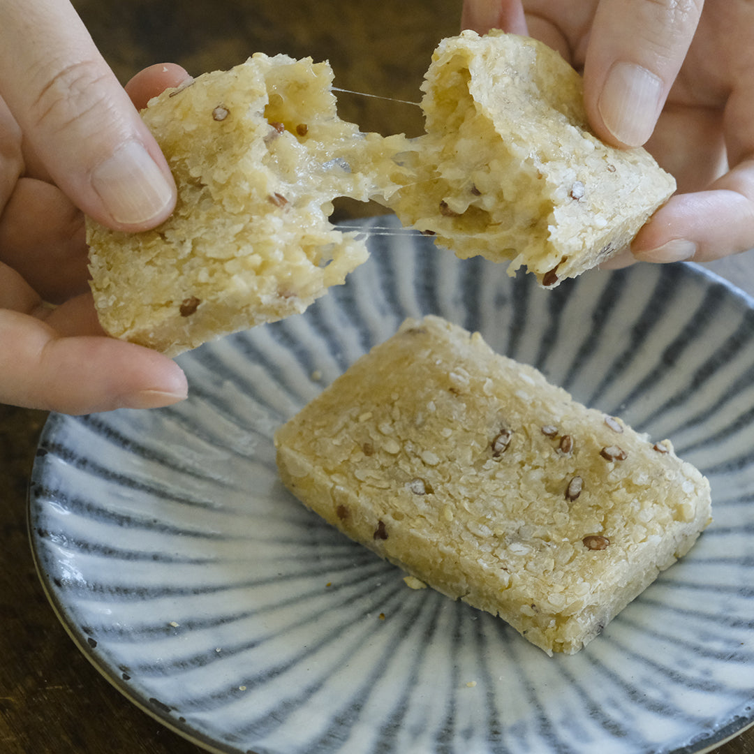 ほんのりと塩気を感じるので、そのままの味で食べてもおいしい赤米餅。古代餅プレーン同様に、様々なアレンジもお楽しみください。