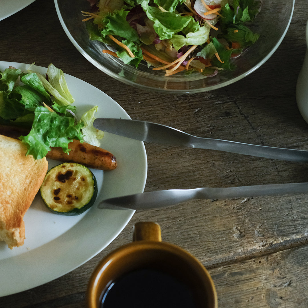 一体型のすっきりした佇まいと、美しい曲線が印象的。まるでカトラリーのようにテーブルの上でもすっと溶け込んで、食卓の風景を邪魔しません。