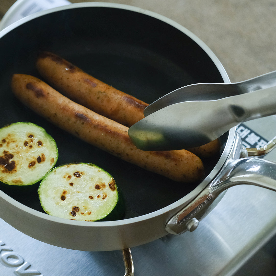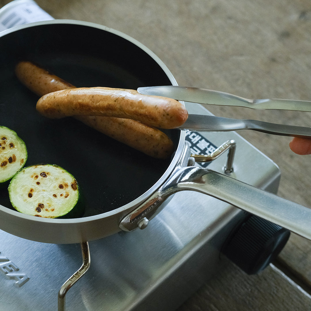 220は、鍋やフライパンなどの調理にも安心して使えるサイズ。ごろんとした塊肉に焼き目を付けるときも、しっかりつかんで鮮やかにひっくり返せます。