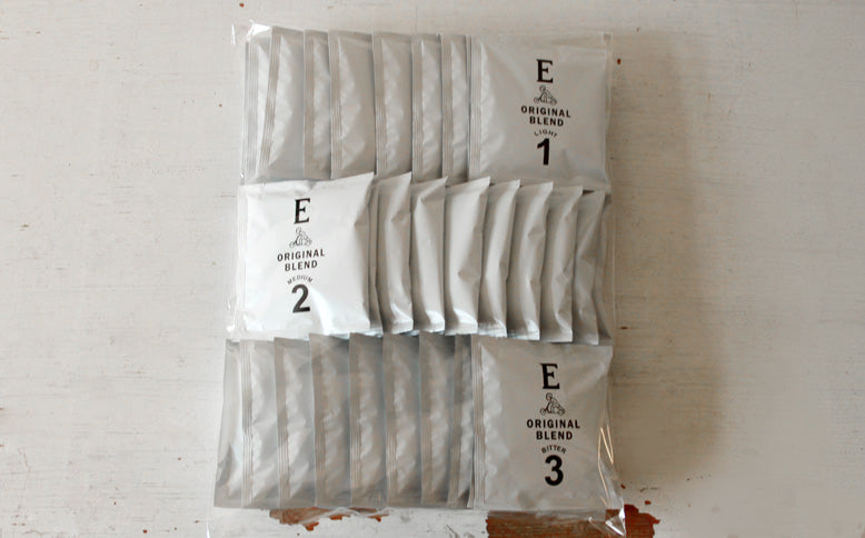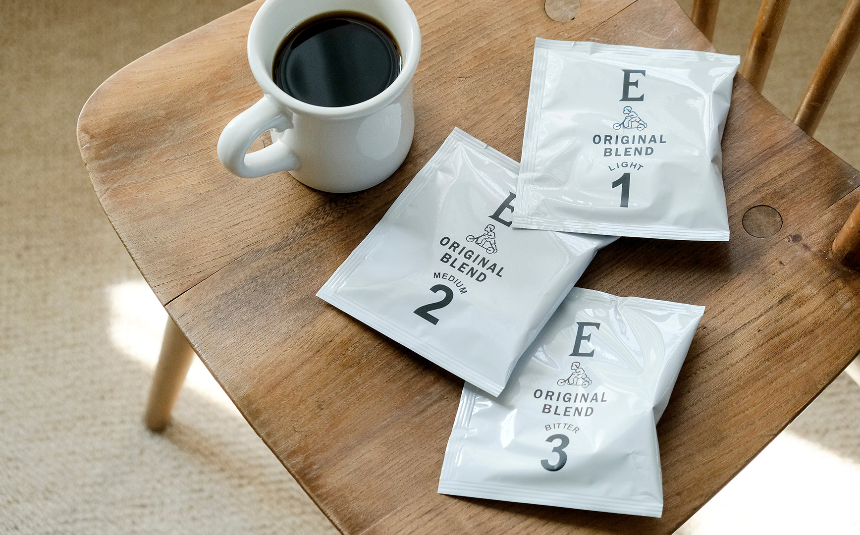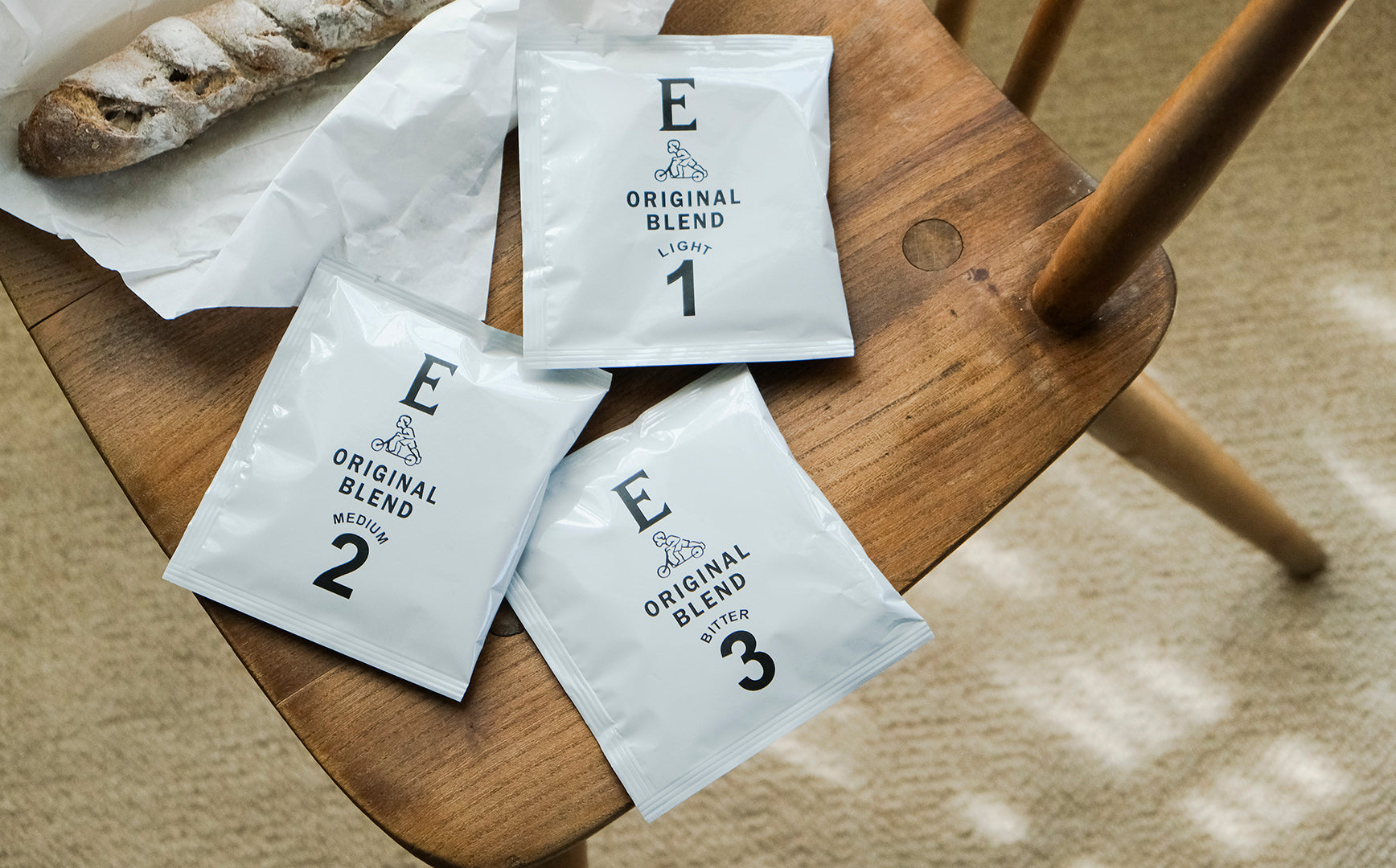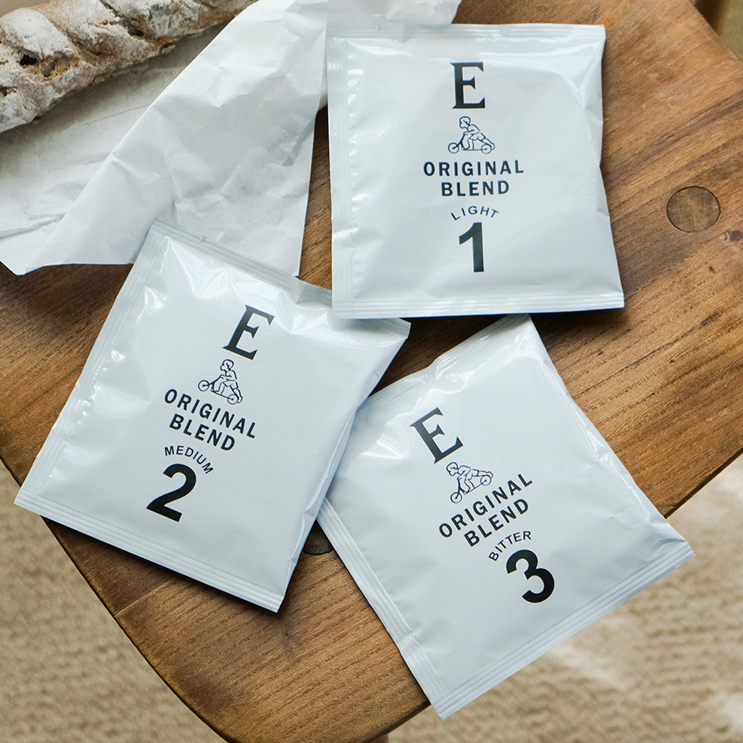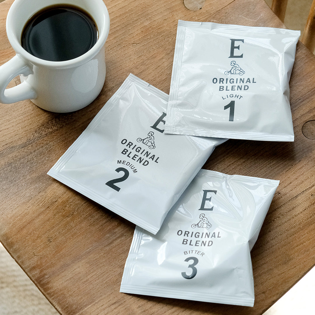 堺にあるコーヒーのお店、エルマーズグリーンのコーヒーが手軽に味わえるドリップバッグです。軽やかなLIGHT、マイルドなMEDIUM、深くしっかりとしたBITTERの3つの味をご用意しました。