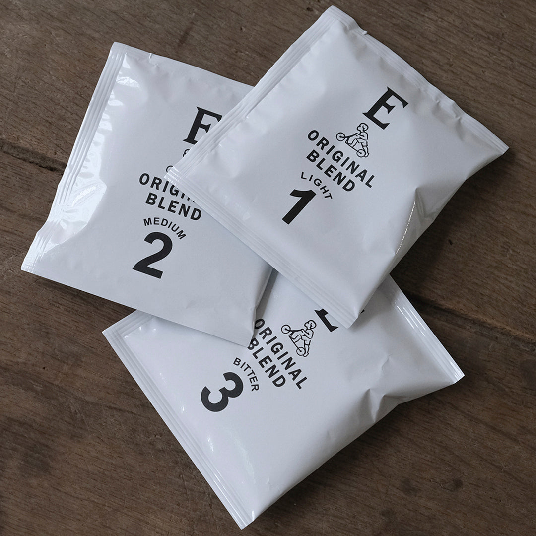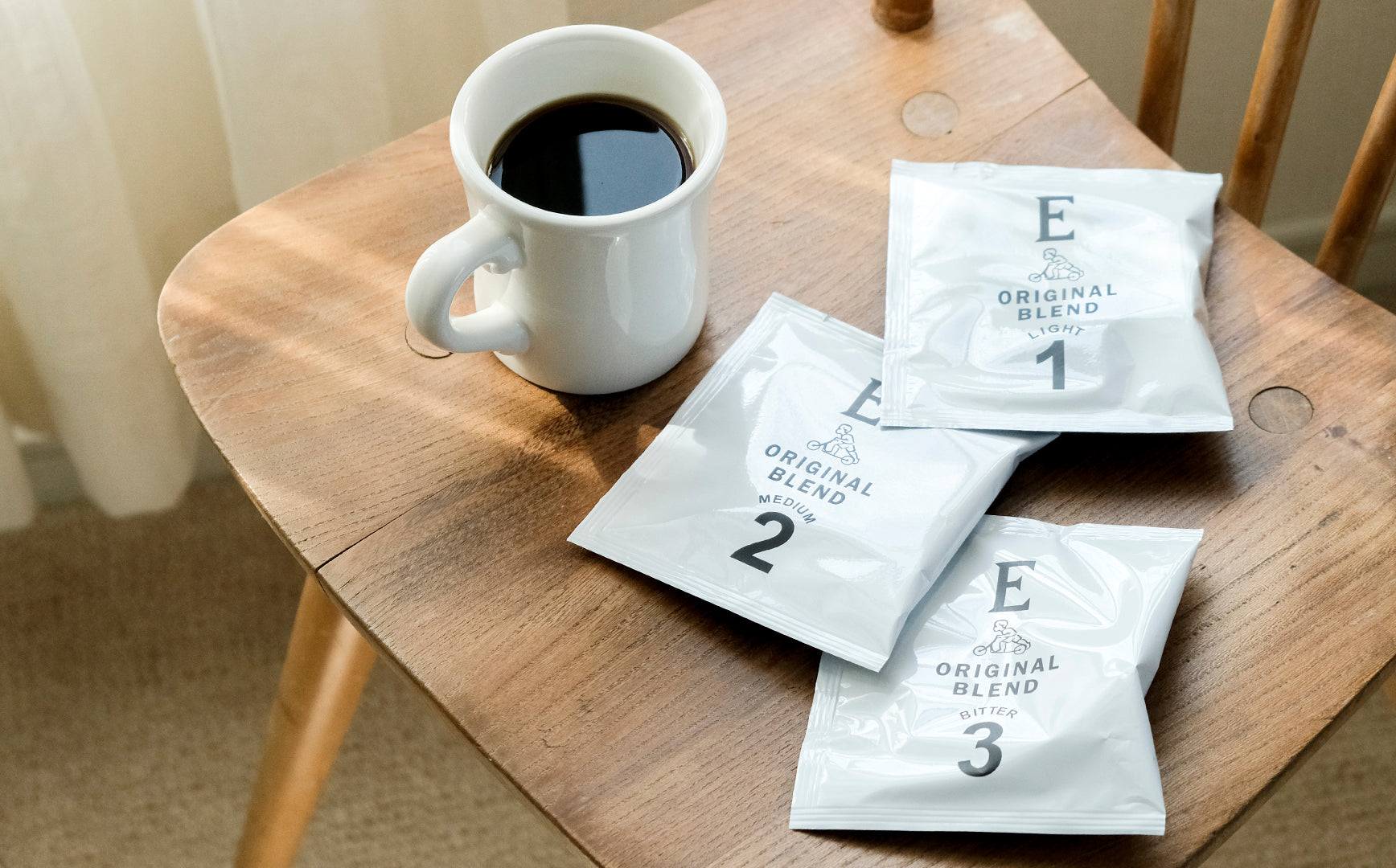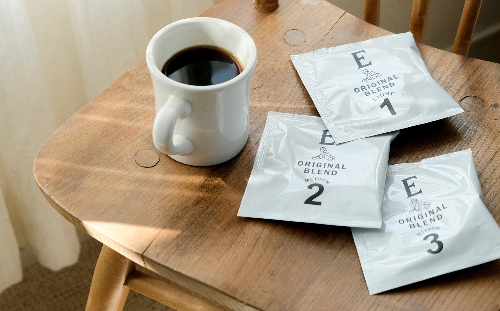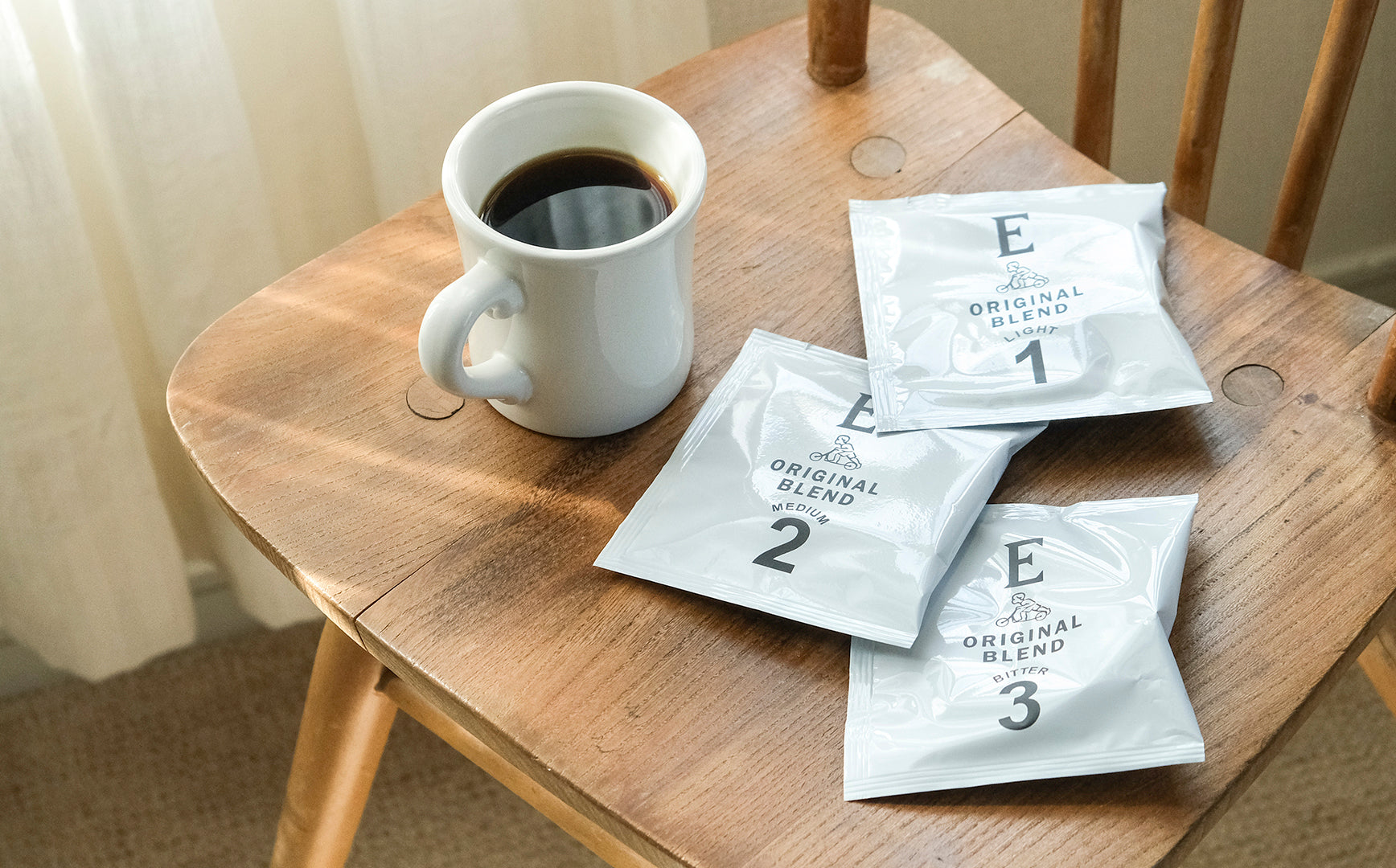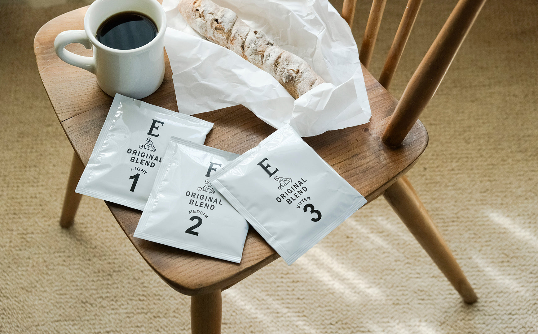 堺にあるコーヒーのお店、エルマーズグリーンのコーヒーが手軽に味わえるドリップバッグです。軽やかなLIGHT、マイルドなMEDIUM、深くしっかりとしたBITTERの3つの味をご用意しました。
