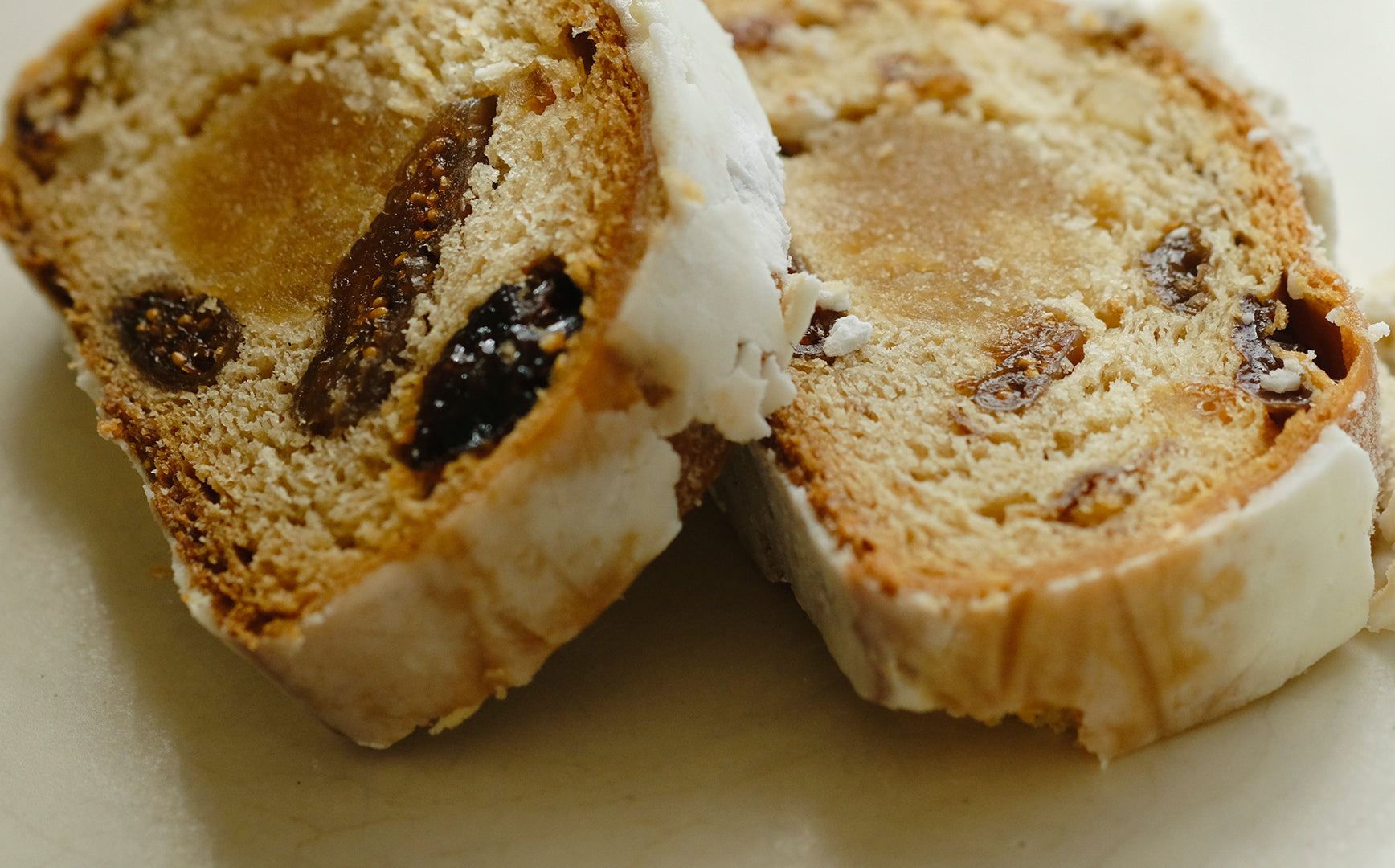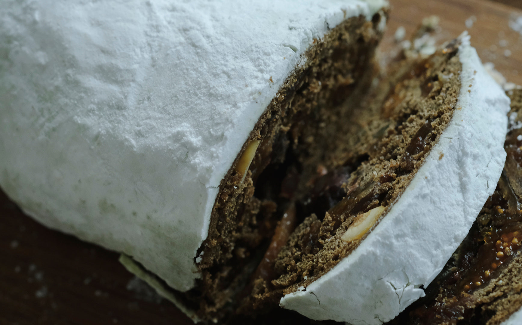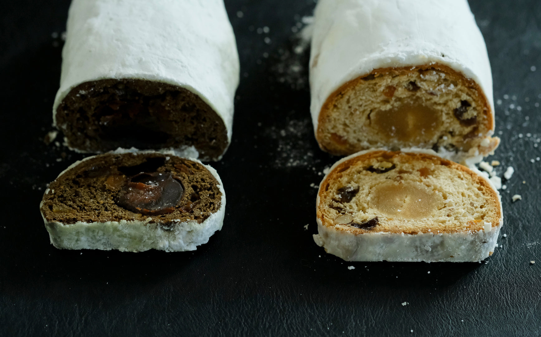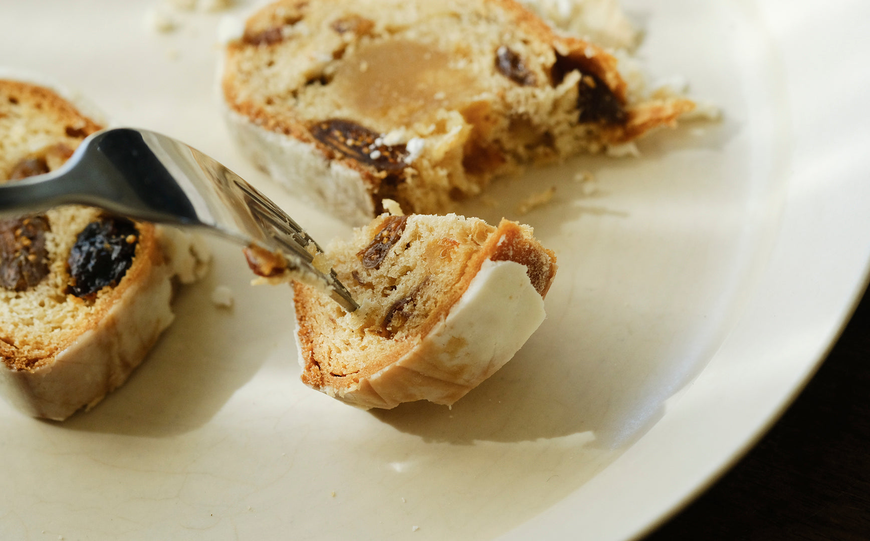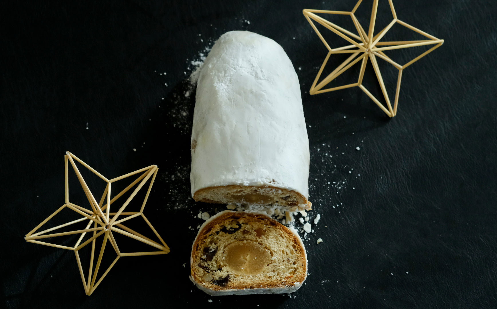 シュトレンはドイツ発祥のクリスマスのお菓子。お酒に漬け込んだドライフルーツとマジパンを混ぜ込んでじっくり焼いた発酵菓子です。