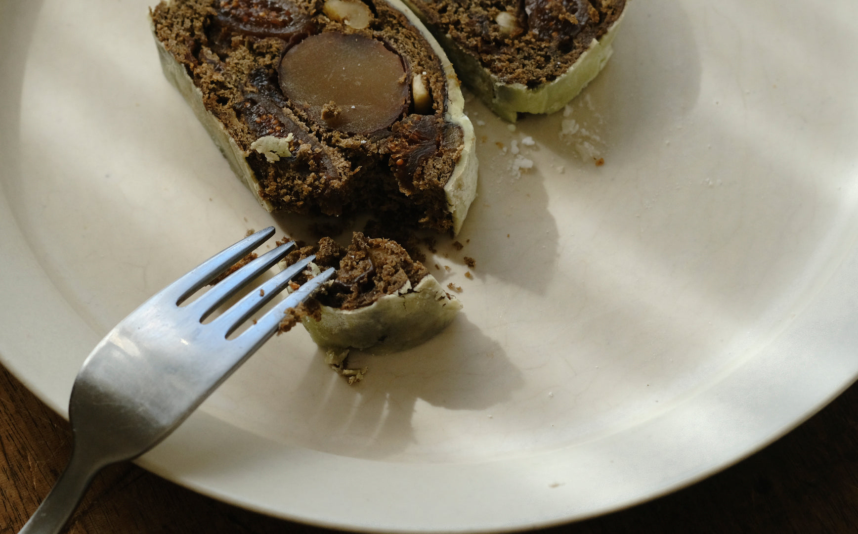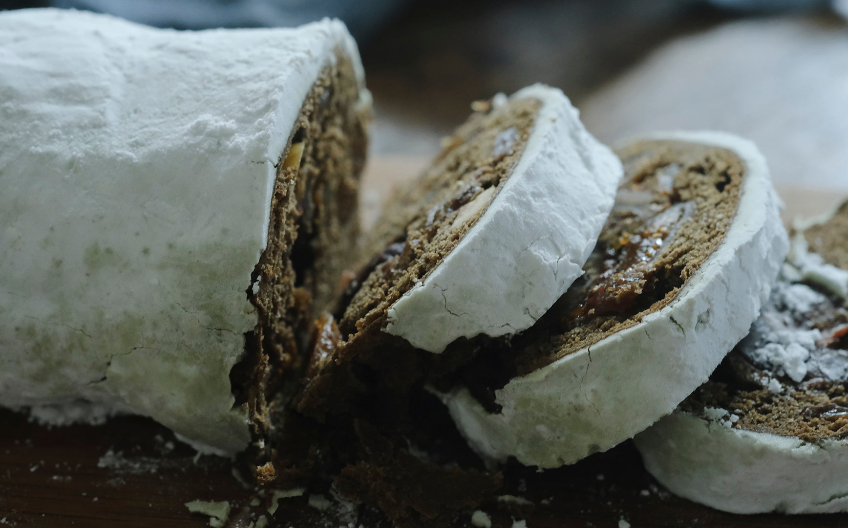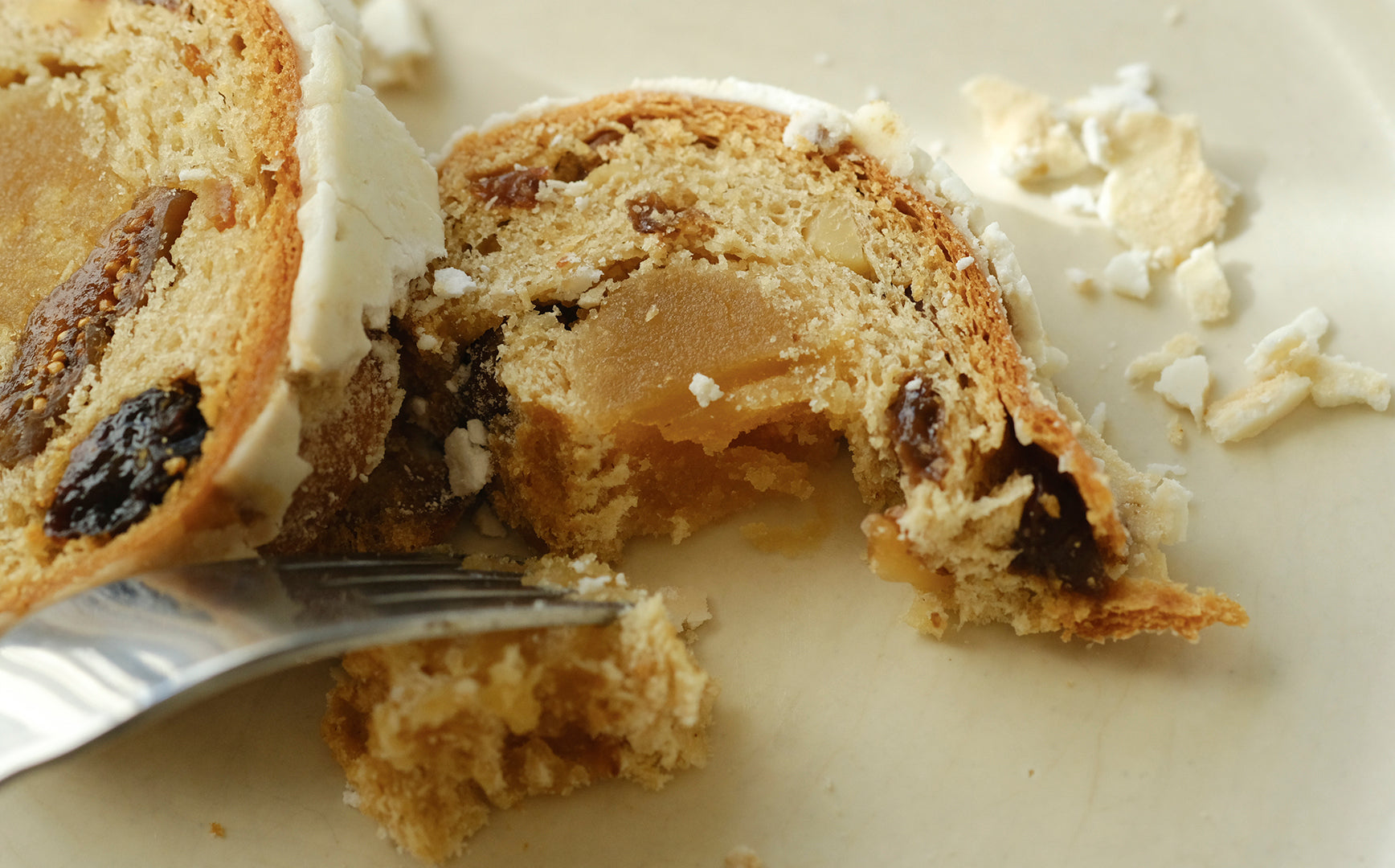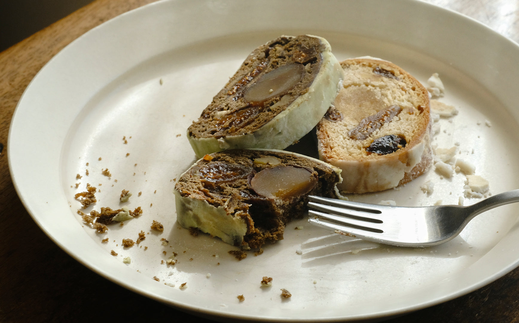 シュトレンはドイツ発祥のクリスマスのお菓子。お酒に漬け込んだドライフルーツとマジパンを混ぜ込んでじっくり焼いた発酵菓子です。