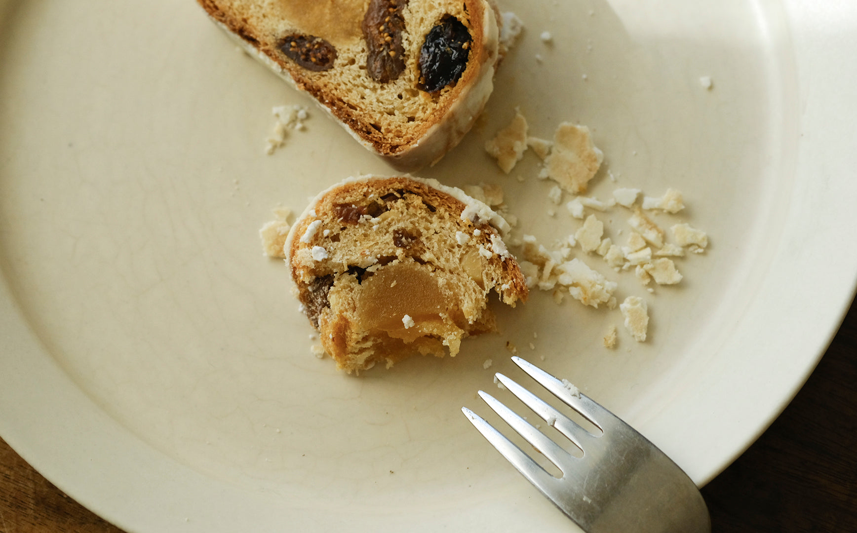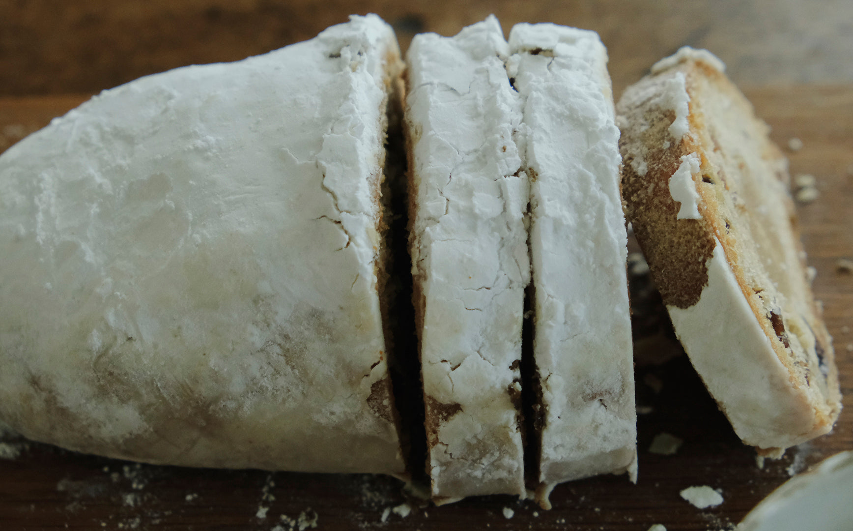 シュトレンはクリスマスを待つ間、真ん中部分から切って食べるものと言われています。クリスマスまでの日にちを指折り数えて心待ちにするような、そんな楽しみも味わえるお菓子です。