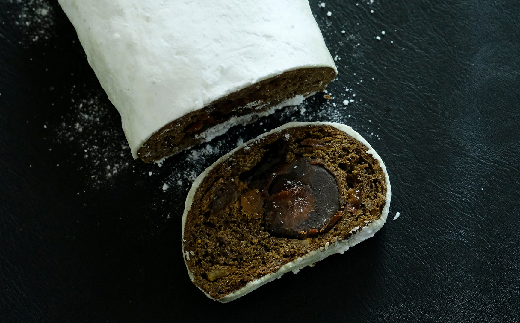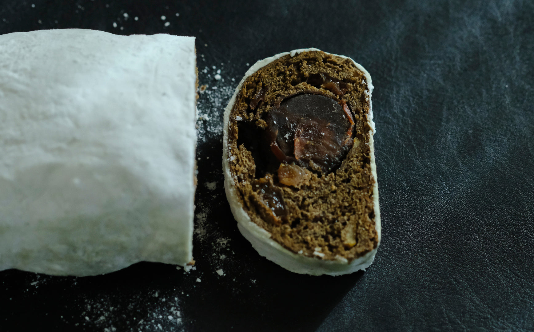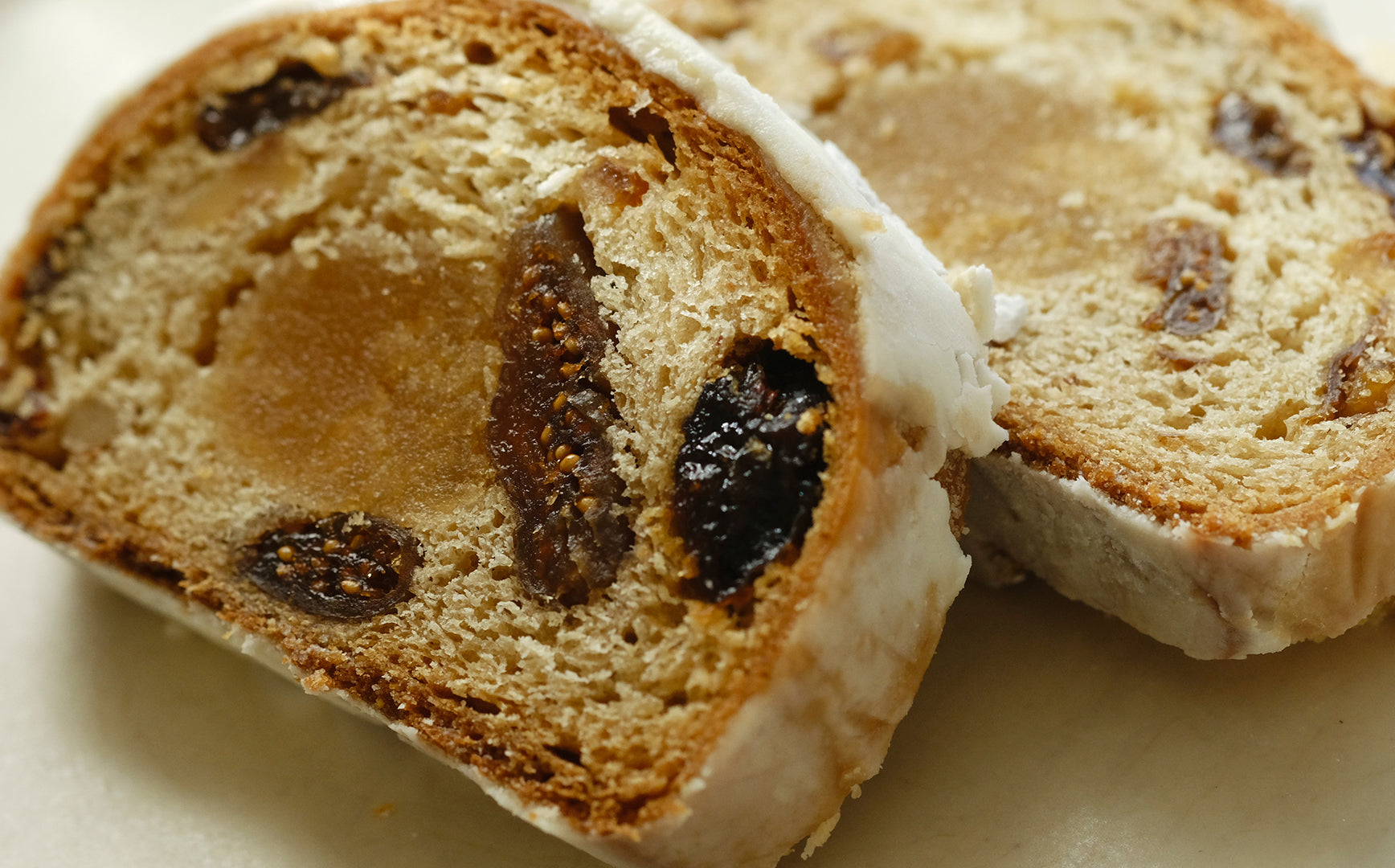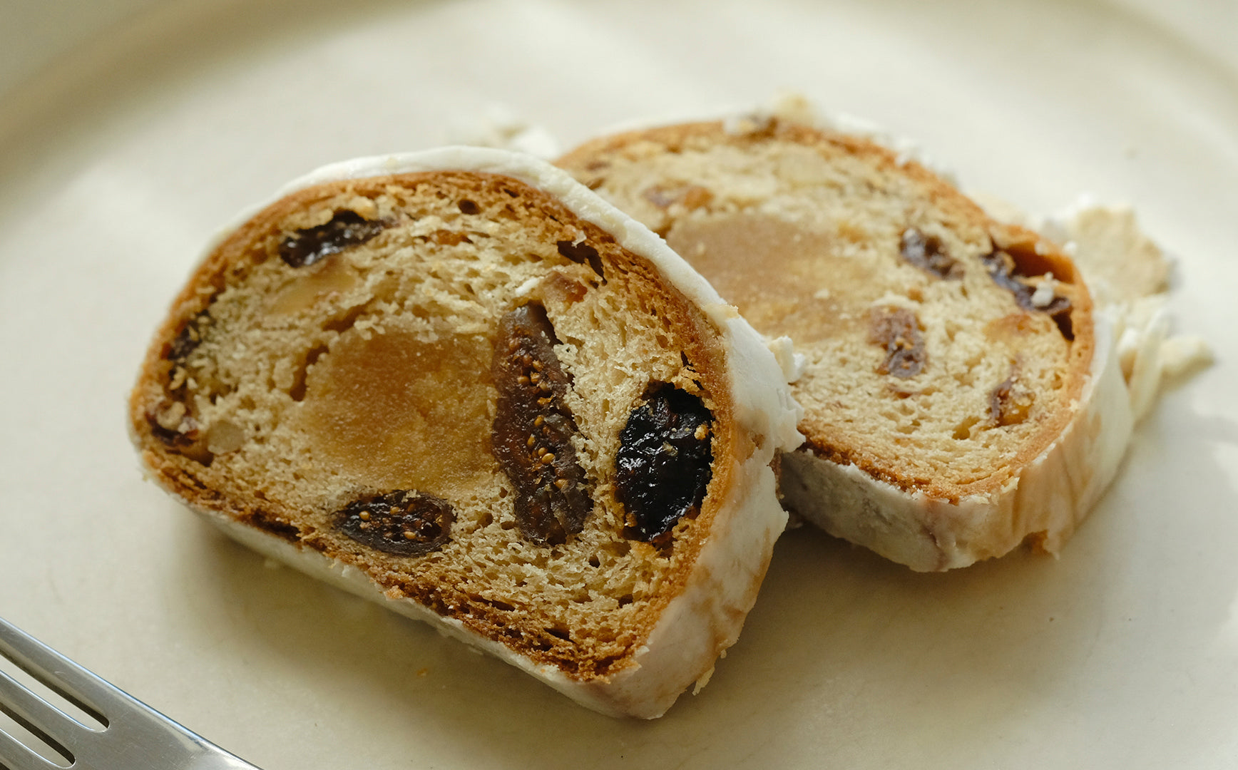 ▲どこを切ってもナッツや無花果の食感が楽しめる、贅沢なシュトレンです