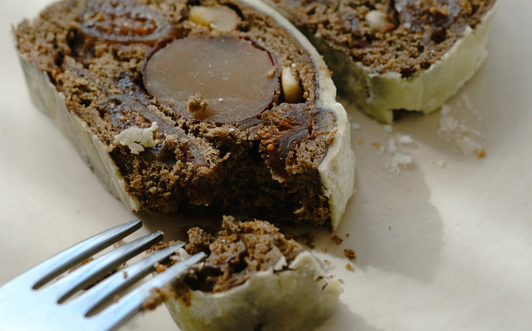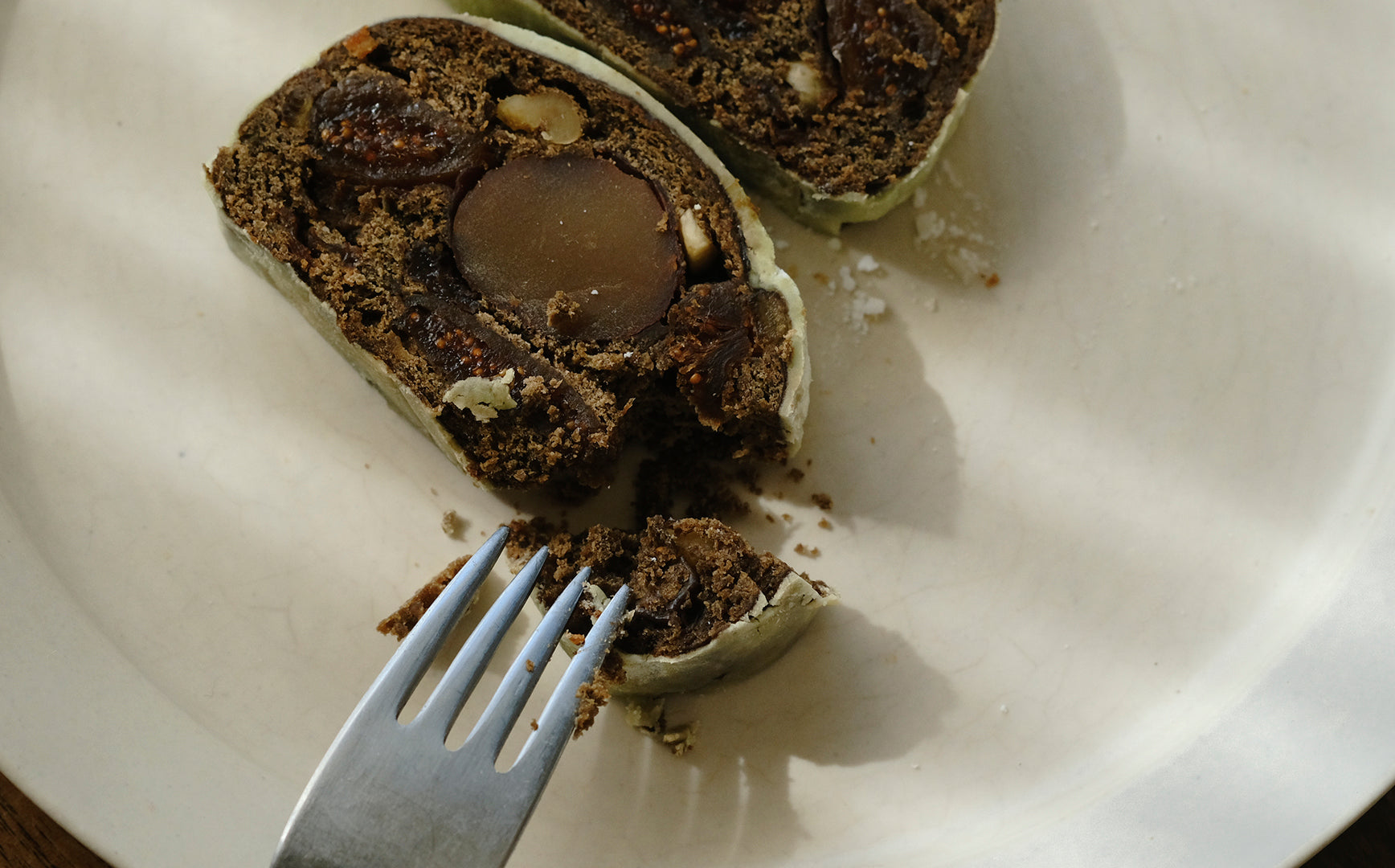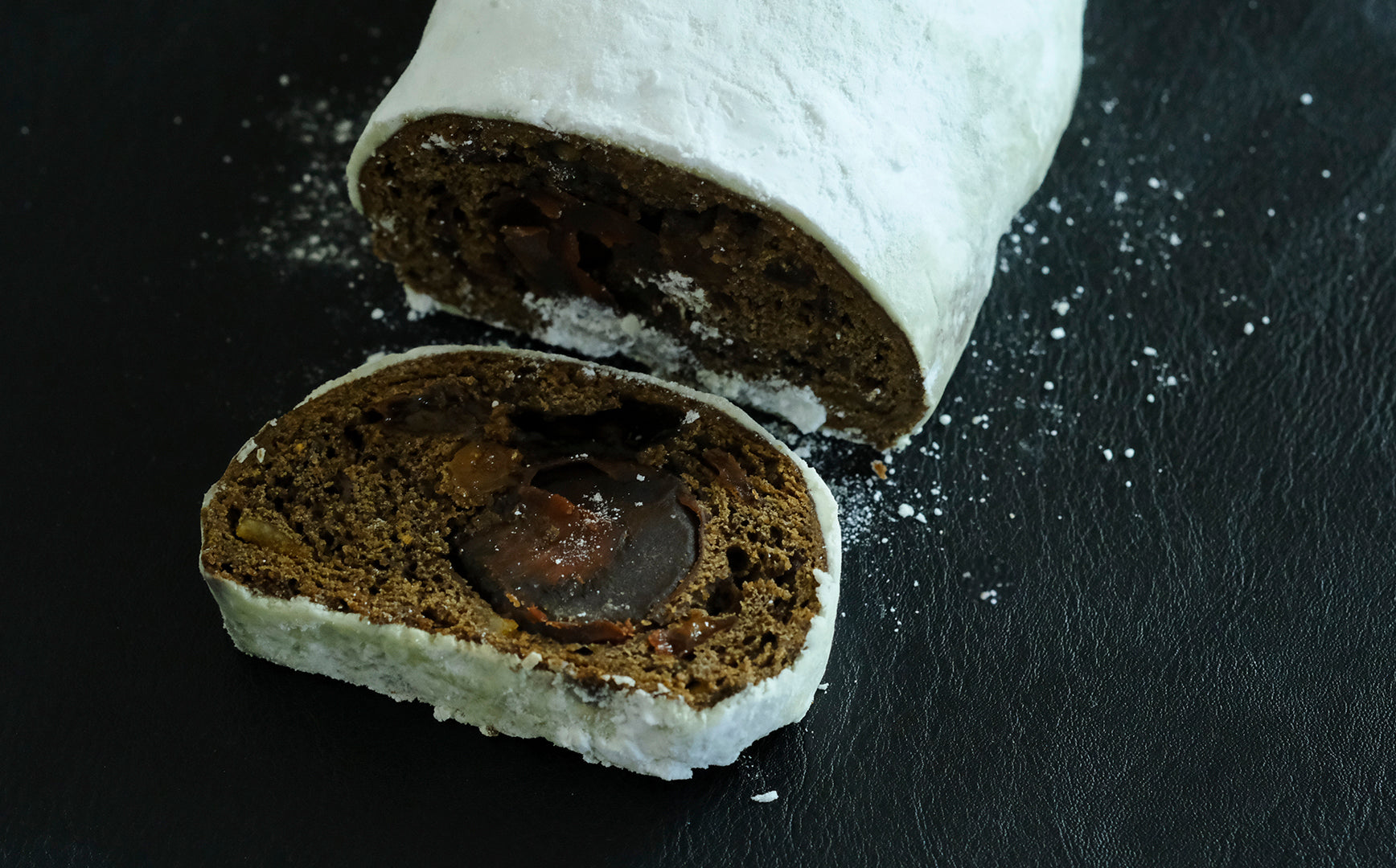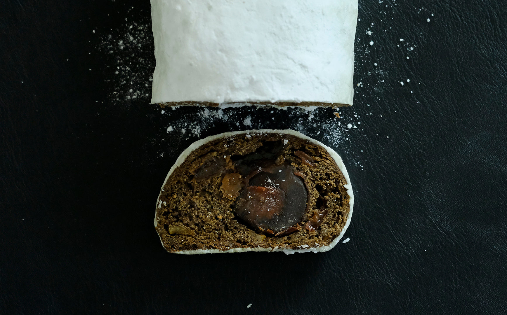 ▲どこを切ってもナッツや無花果の食感が楽しめる、贅沢なシュトレンです