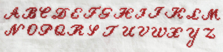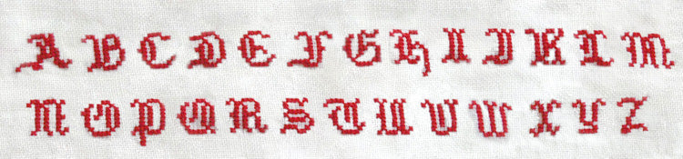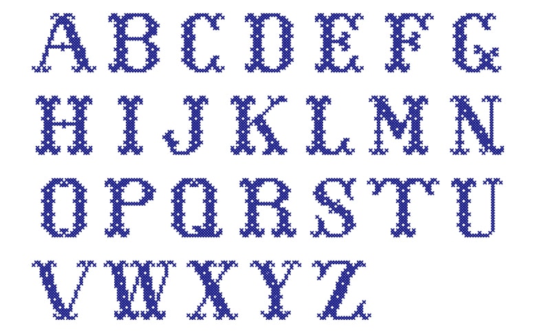 クロスステッチの書体を4種ご案内しております。文字の大きさは生地の目によって、若干異なります。