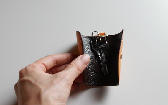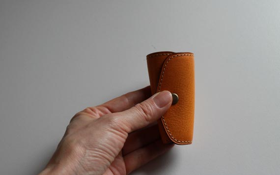 箱田鞄のキーケースはコロネという名の通り、カギを包んで丸まるしくみ。