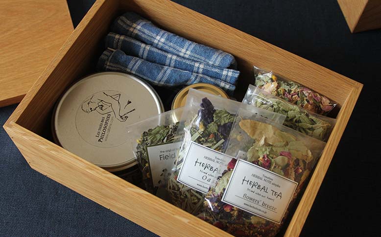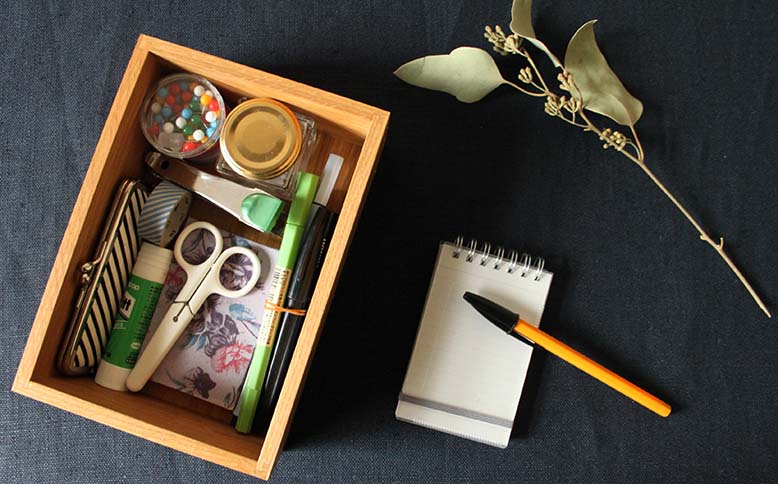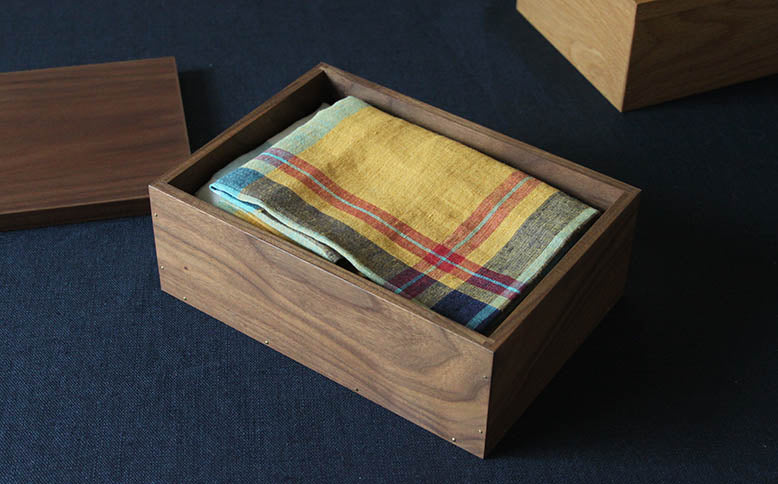 3つのサイズのsquare boxは、裁縫道具、薬、文房具、キッチンクロスなど、どんなものを入れるかは使い手次第です。
