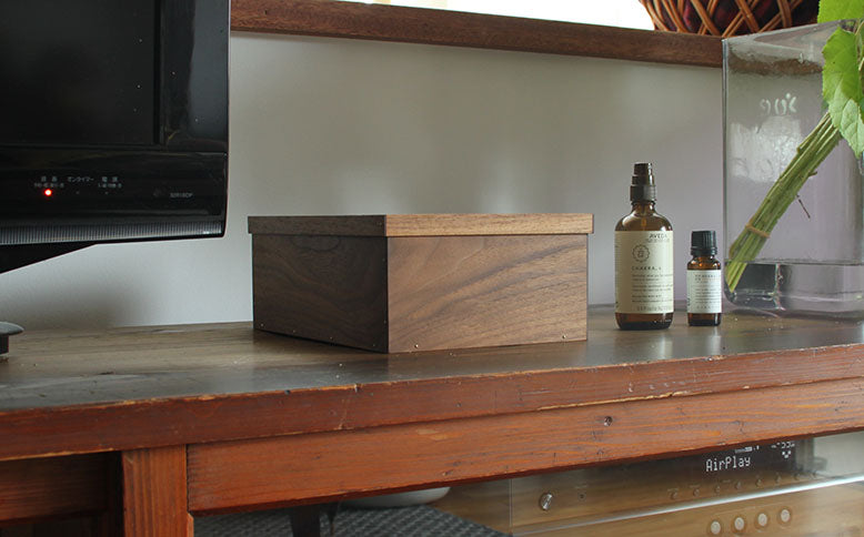 収納している姿も美しい、木製の箱。