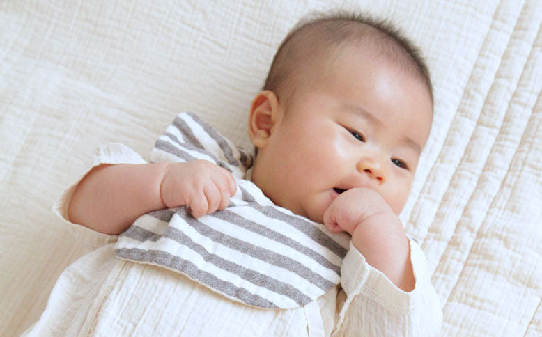 よだれの多い時期、スタイは日に何度も取り替えるもの。だから水分をよく吸って乾きやすいガーゼ素材はとっても便利。優しい肌ざわりだから、デリケートな赤ちゃんの肌も安心してぬぐえます。