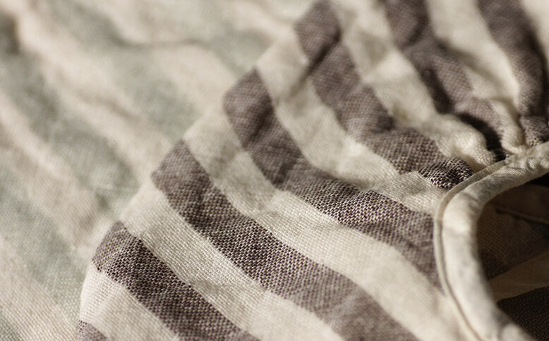 ▲柔らかなガーゼで2枚の生地を1枚に仕立てています。生地と生地の間に空気が含まれてあたたかです