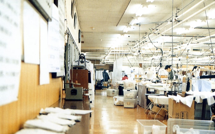 ▲糸魚川にある縫製工場。国内でつくられた生地を織り上げたままの生機の状態で仕入れています。扱いづらい生機を思い描いたようなかたちにできるのは自社制作だからこそ(写真提供:ao)