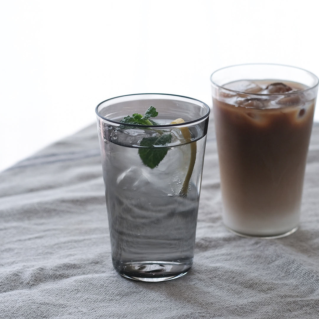 「cup long」はclear、charcoalの2色展開のコップ。longタイプは、「THE・コップ」と名付けたくなるような、コップという形を追求したような簡潔なデザイン。ちょうど手にすっぽり収まるサイズで、とても持ちやすいです。
