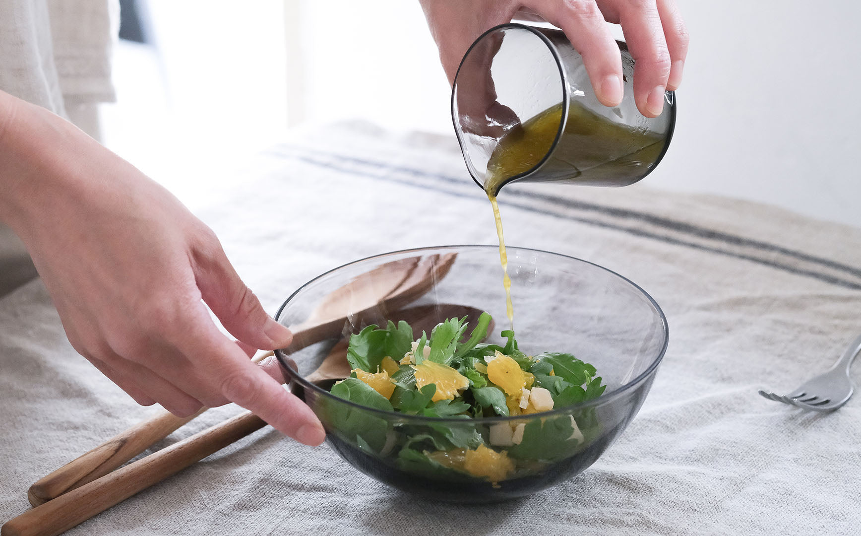 片口としてドレッシングやめんつゆをいれて食卓へ。丁寧に形づくられているため“注ぎ心地”も抜群で、液だれの心配はありません。▲charcoalにドレッシングを入れて。ボールはcharcoal bowl large