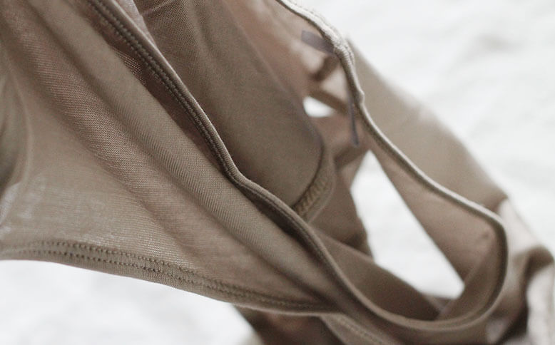 COCOONA SKINWEARのマキシショーツは、シルクを極薄のハイゲージスムース生地仕立て。そのため面積の大きいデザインでも、もたつきがなくすっきりとしたシルエットです。▲パデッドキャミソールと同じハイゲージスムース生地