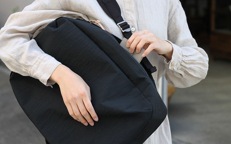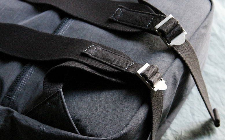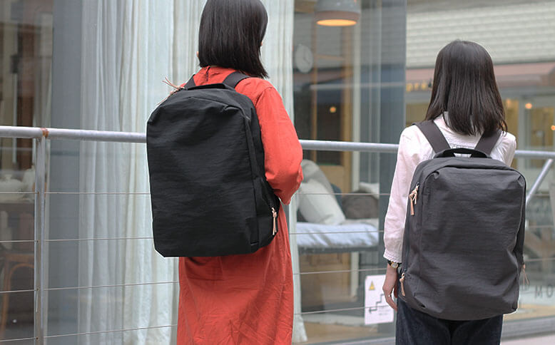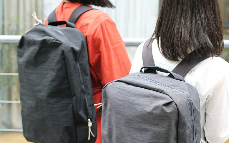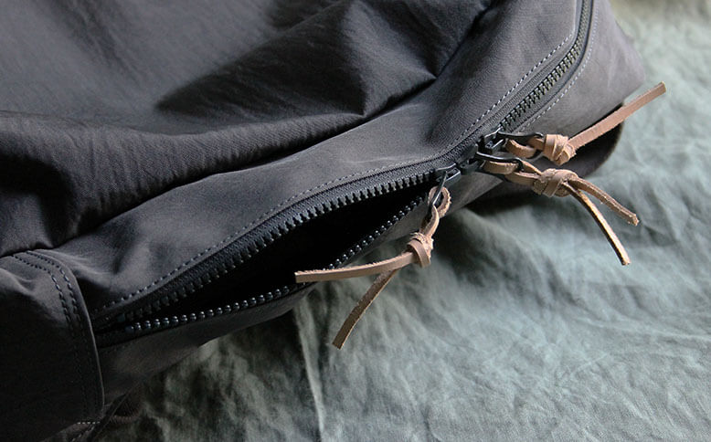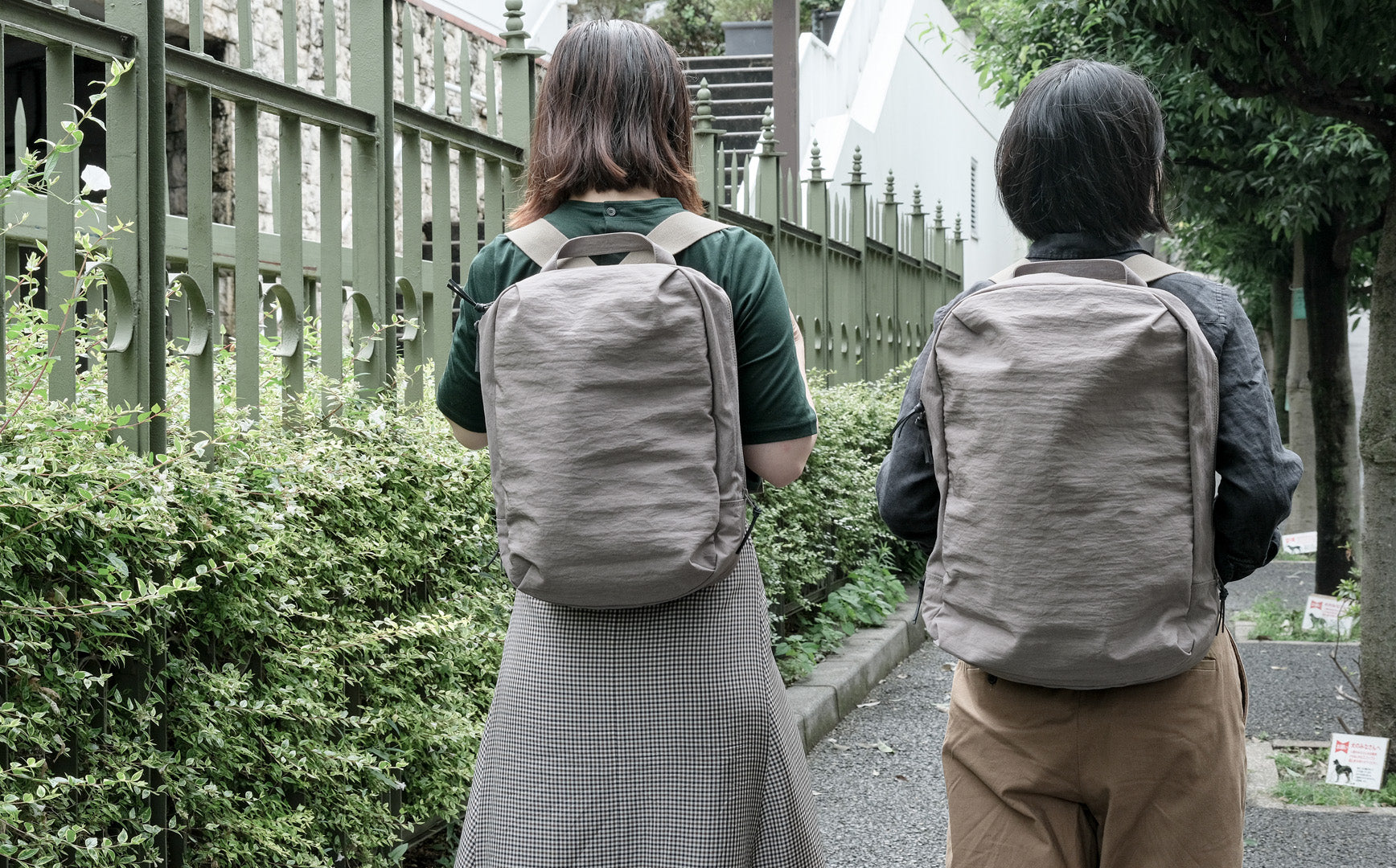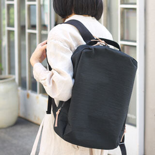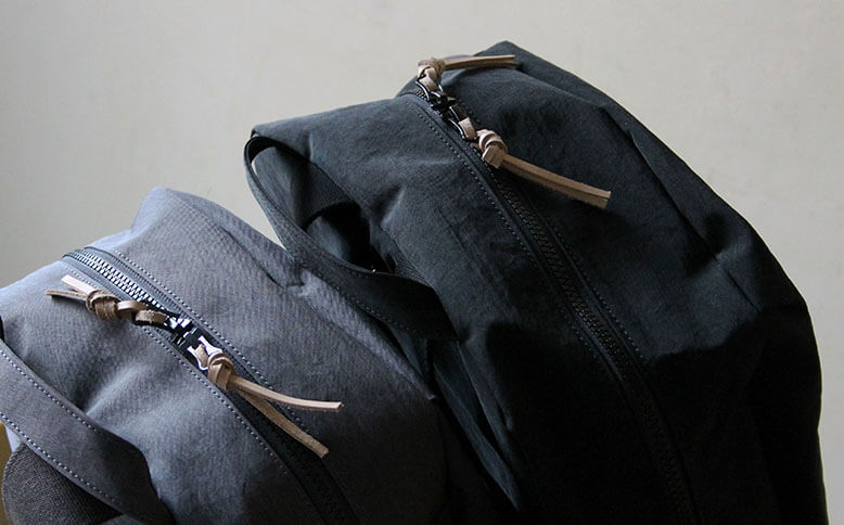 デザインと機能の両方が叶うリュック。気が付いたらいつも使っています。天然素材のような風合いをもったナイロン生地は福井で職人の手によってつくられています。