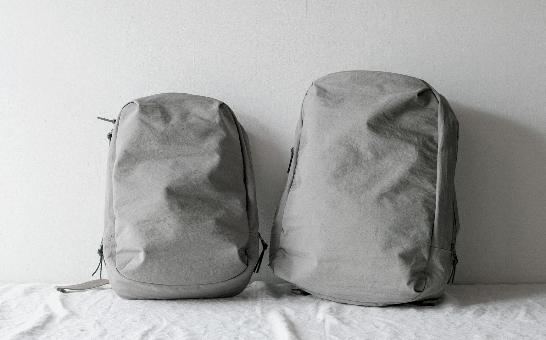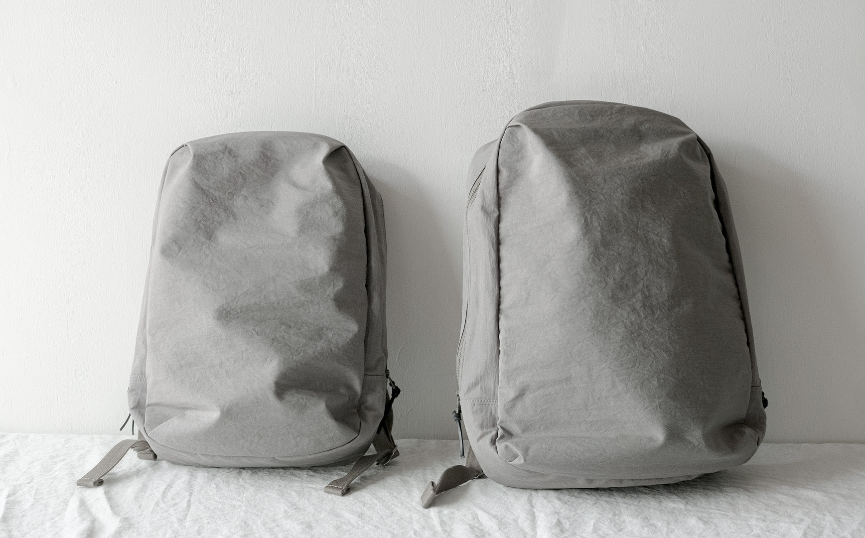 ▲リュックの重さは約500g 左:ブラックLサイズ、右:ダークグレーMサイズ