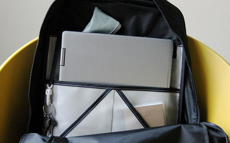 きちんとノートパソコンが入るようつくられているので、仕事にも使える。まさにイメージ通りでした。