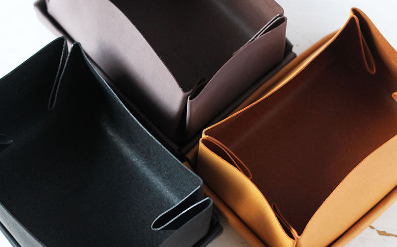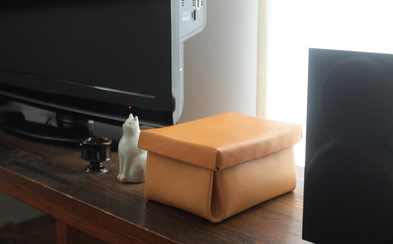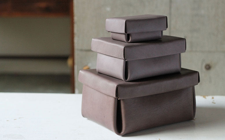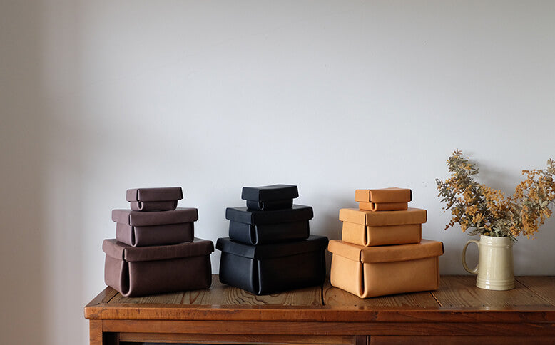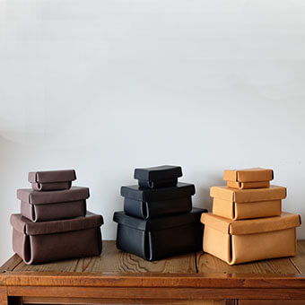 何を入れるかは、使う人それぞれの思うままに。Lille og Stor(リレオストア)のkasse(カッセ)は、ヌメ革ならではの個性を活かしてつくられたレザーボックスです。