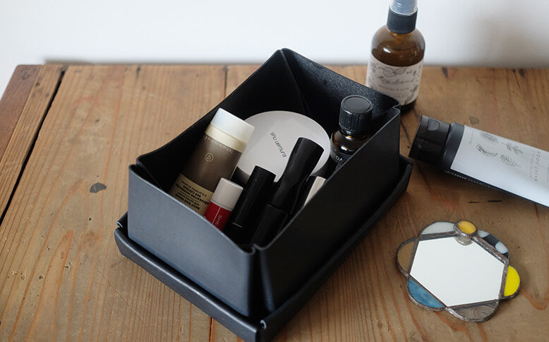 ▲化粧品や爪切り、ハンドクリームなど身だしなみの道具入れに