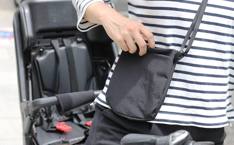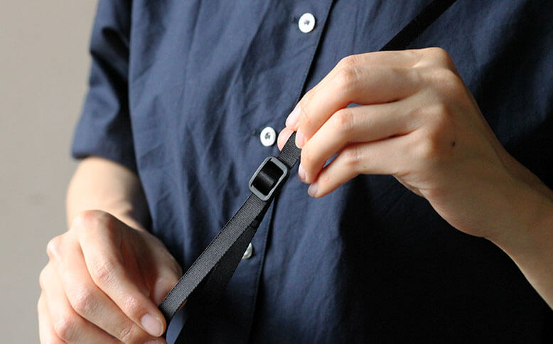 ストラップの長さを調節して、前でも後ろでも使いやすさに合わせてお使いください。