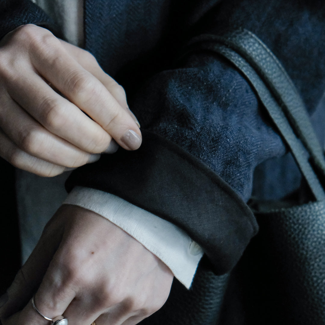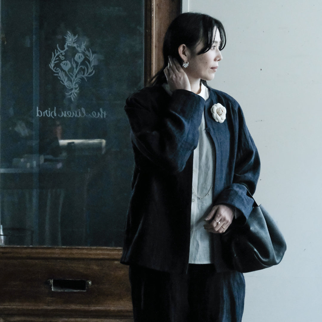 リトアニア産のしっかりとしたヘリンボーンリネン生地は、どんなシーンにも品よく馴染みます。