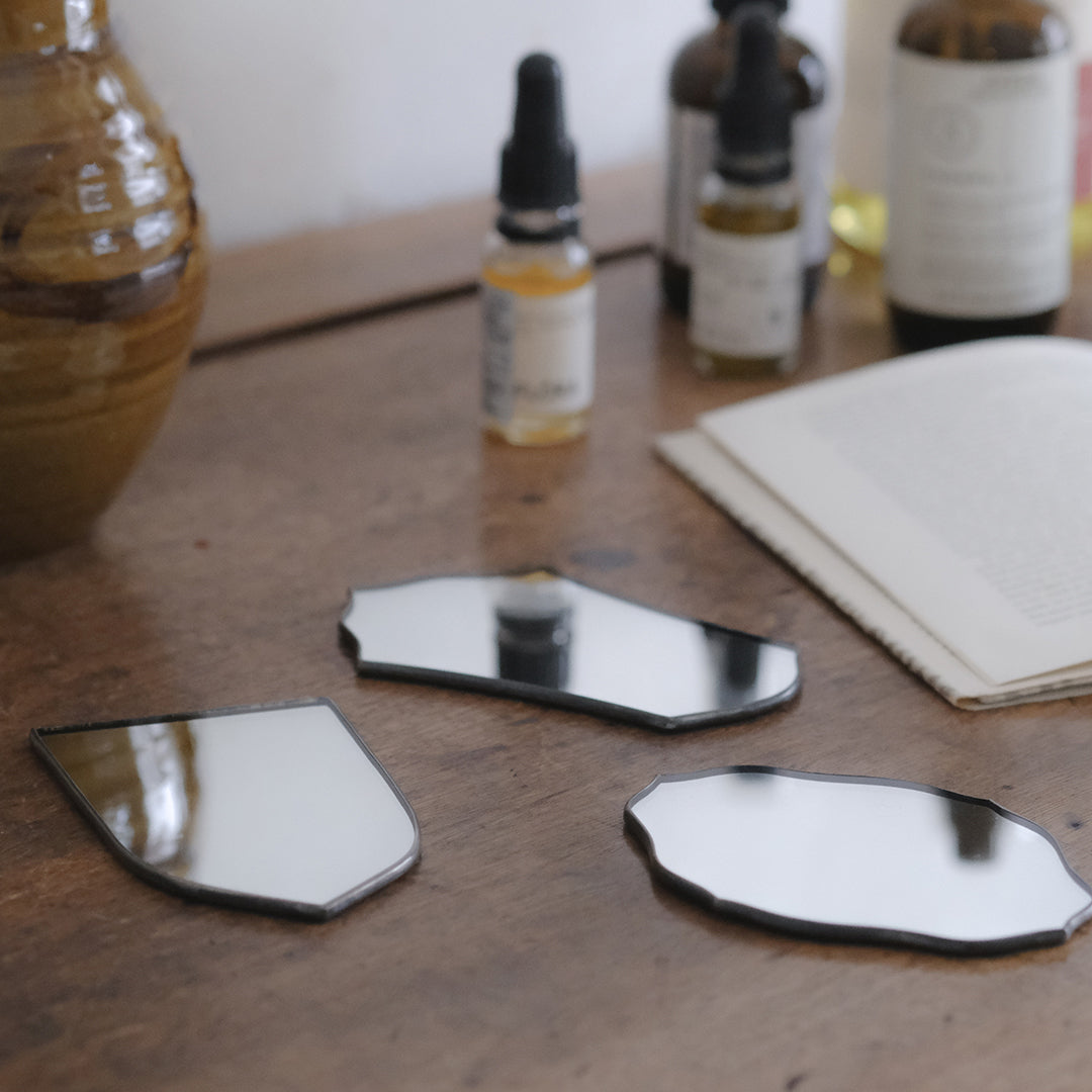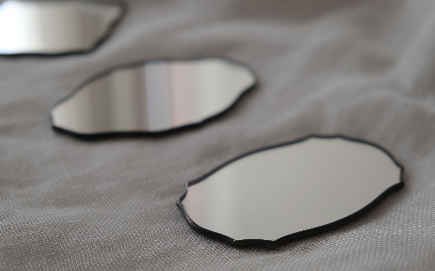 刻々と移り変わる光の表情を感じさせてくれる鏡の作品たちは、先に生まれたatelier madoのオーナメント作品をきっかけに誕生しました。