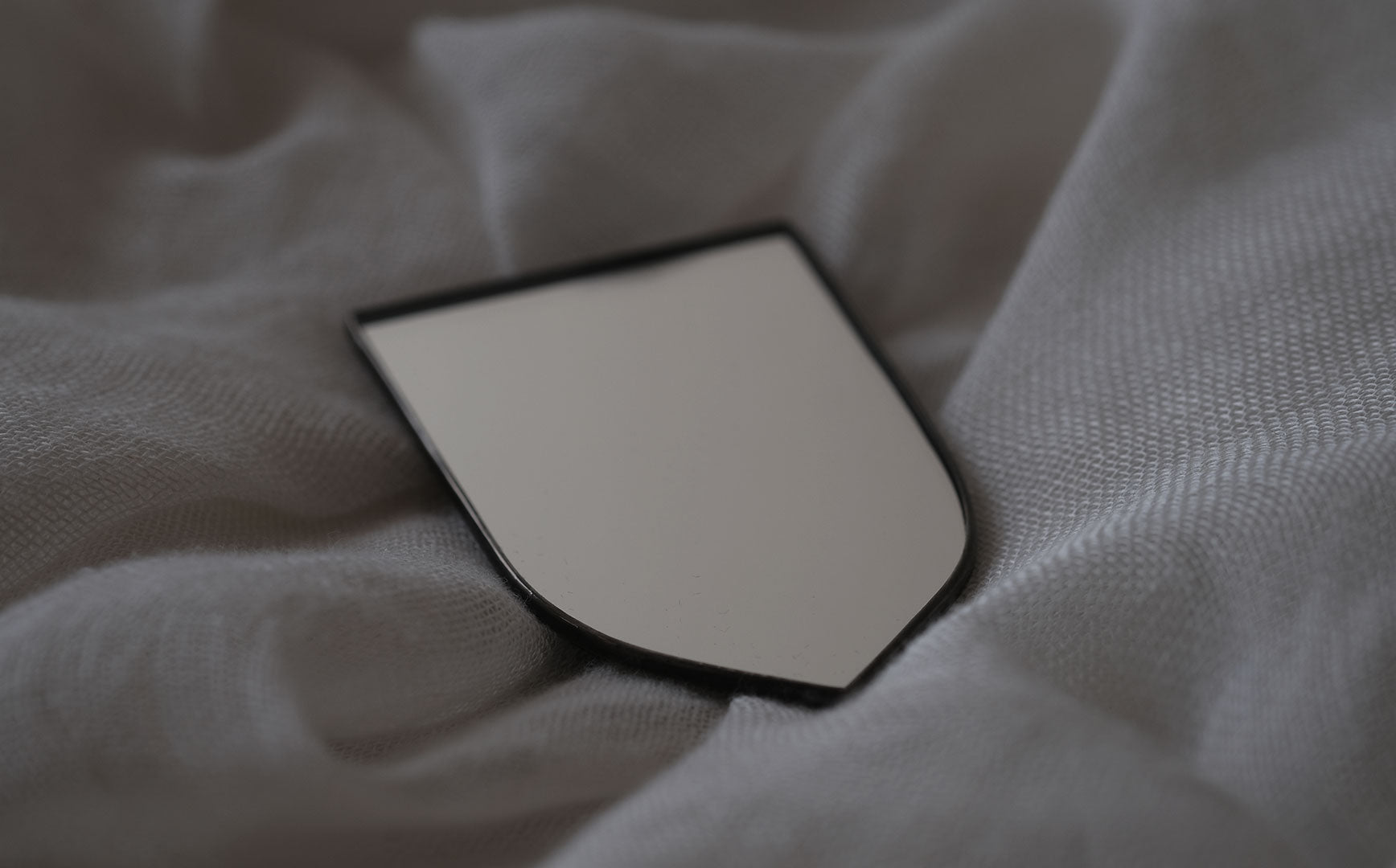 ハンドカットで切り出された曲線がすっと手に馴染む手鏡。まるでアンティークのような雰囲気が漂います。