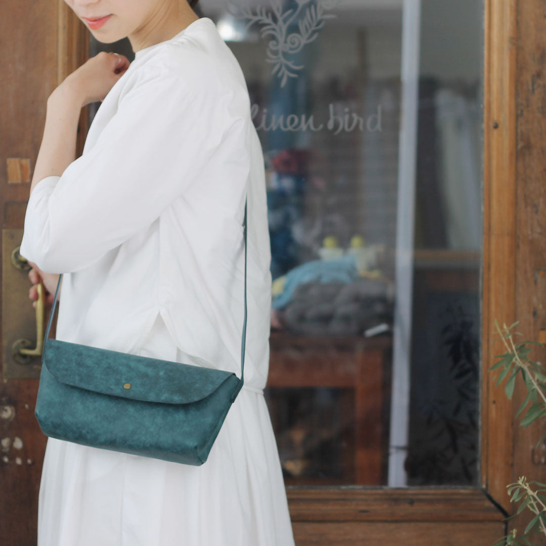 さらりとした雰囲気の革に、真鍮無垢のカシメが優しく色を添えます。